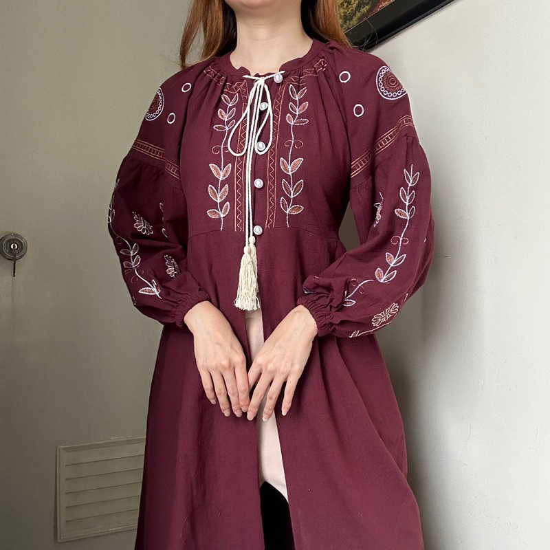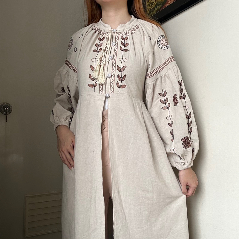 Syafa Top Tunik Dress Atasan Blouse Wanita Linen Bordir Korean Style By BIEL The Label