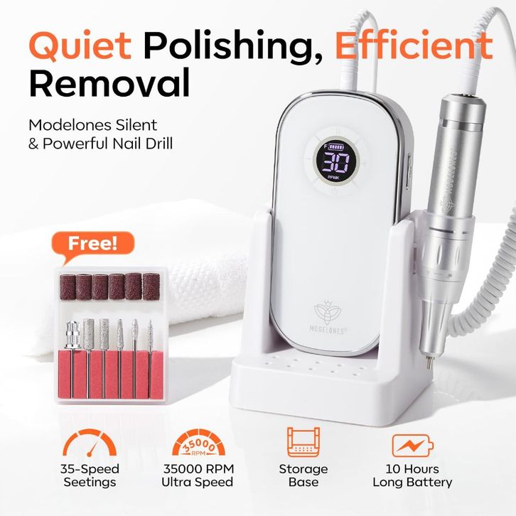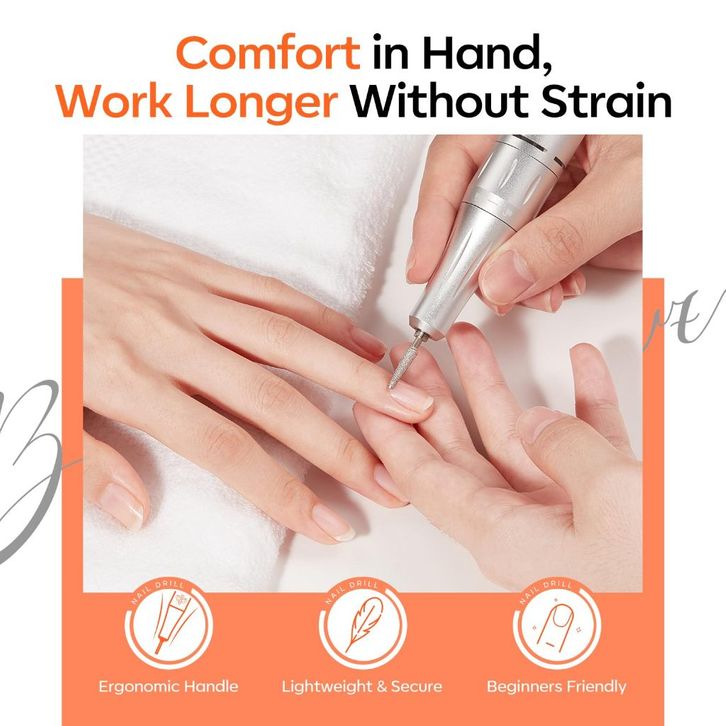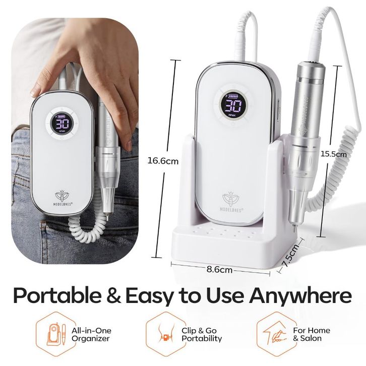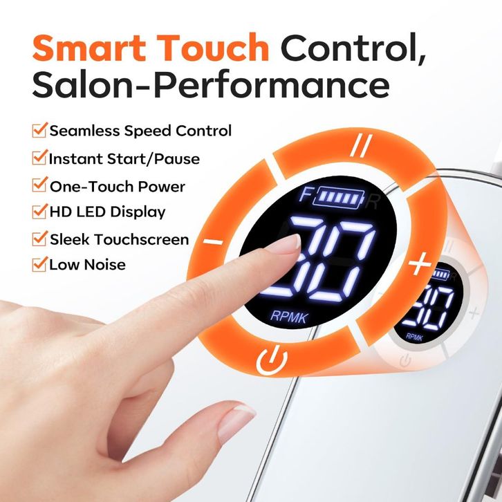 [Star] Professional Electric Nail Drill Portable Cordless Touchscreen 2000mAh 10h+ Runtime Rechargeable Nail Drill