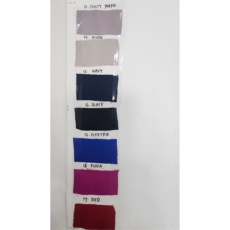 Black, Bw, Ice blue, Fusia, Brown, Nude, Navy, Dusty blue, Denim, Denim tua, Turqoise, Emrald, H.botol, Dusty purple, Elektrik, Red, Taupe, Silver, Maron A, Maron B