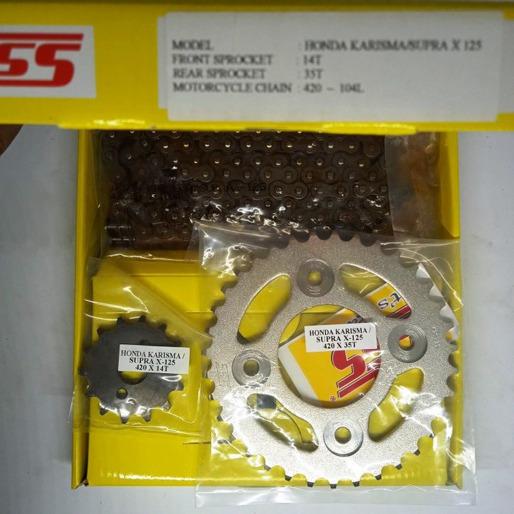 SSS Chain Kit Gear Gir Set Karisma Kharisma Supra X 125 Satu Set Lengkap Gear Depan Belakang Rantai
