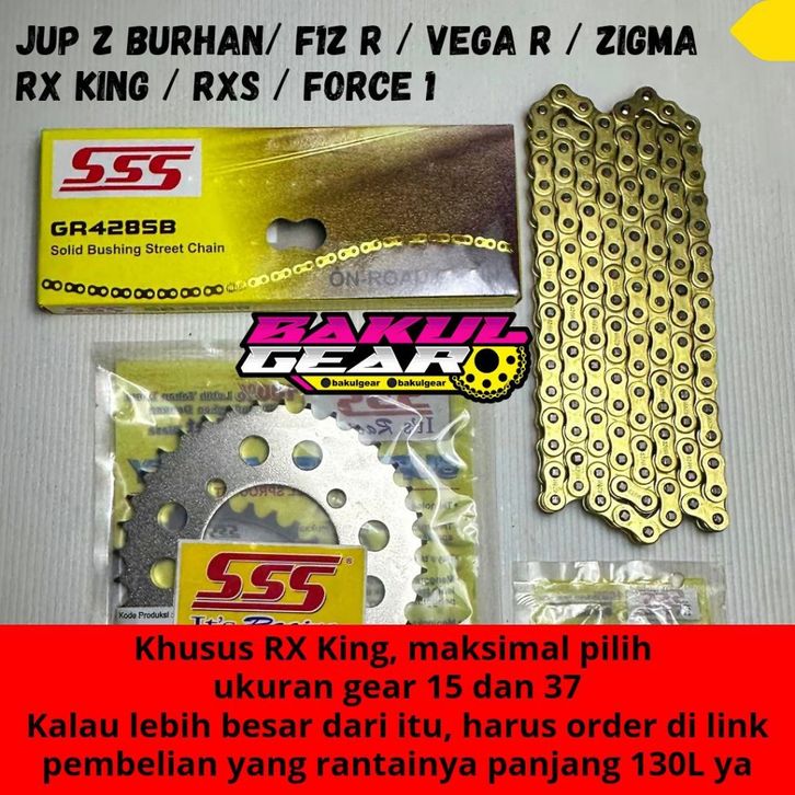 Gear set SSS RX KING FIZR Jupiter Z Burhan Vega R Vega RX S Fiz R F1ZR Rantai 42 dan 415 K6
