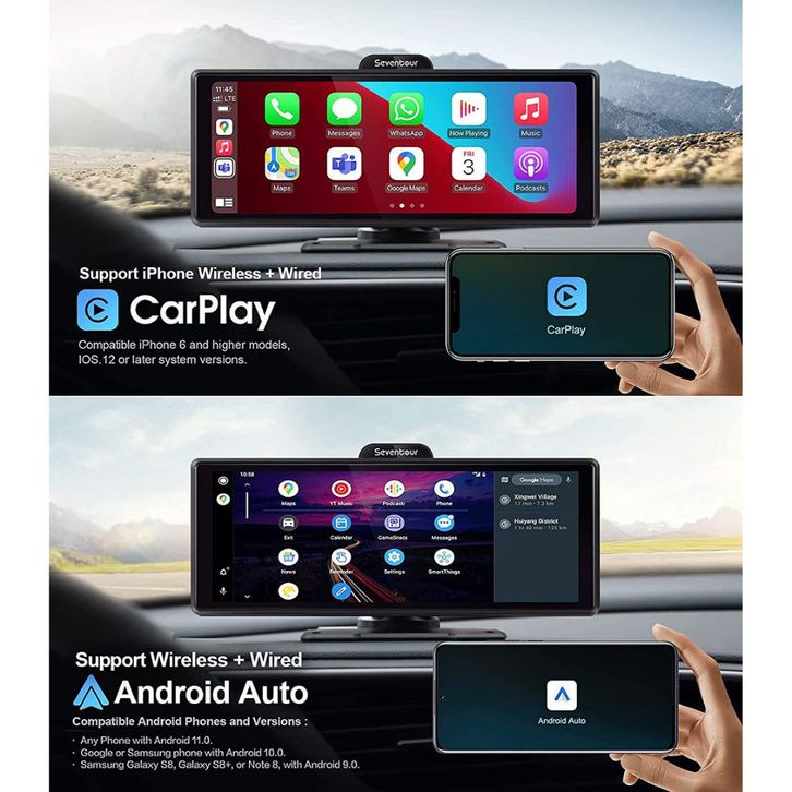 JK Space Nirkabel IOS Carplay&Android Auto 7/10 Layar Sentuh Mobil Navigasi Pemutar Video Multimedia