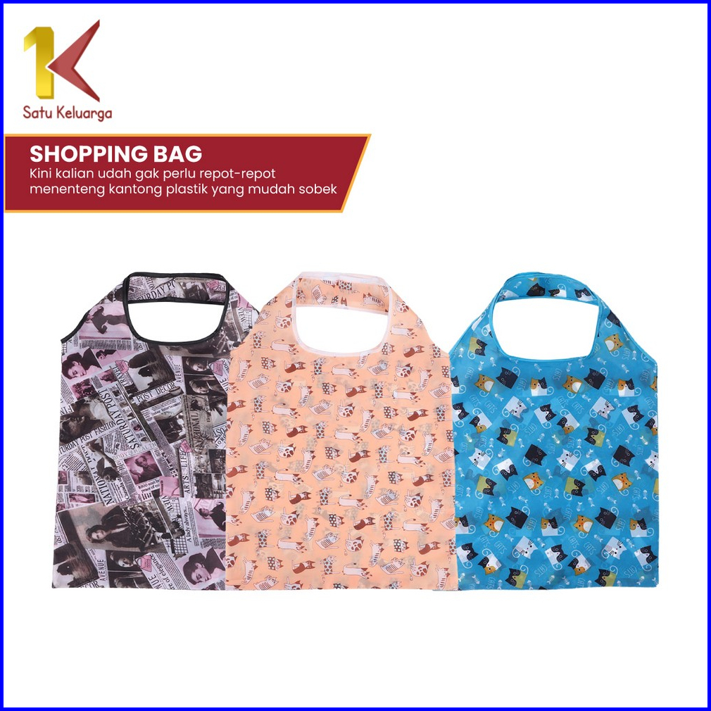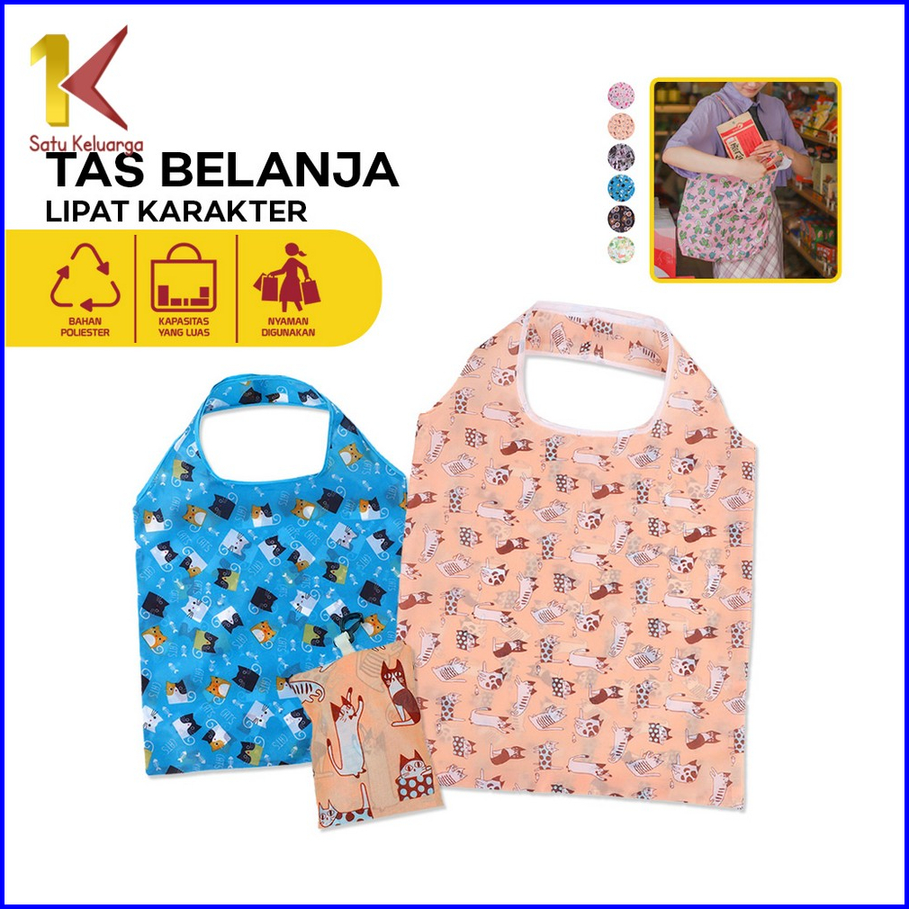 Satu Keluarga Tas Belanja Lipat Karakter T47 Kantong Belanja Ramah Lingkungan Shopping Bag Reusable Bag Tas Lipat Serbag