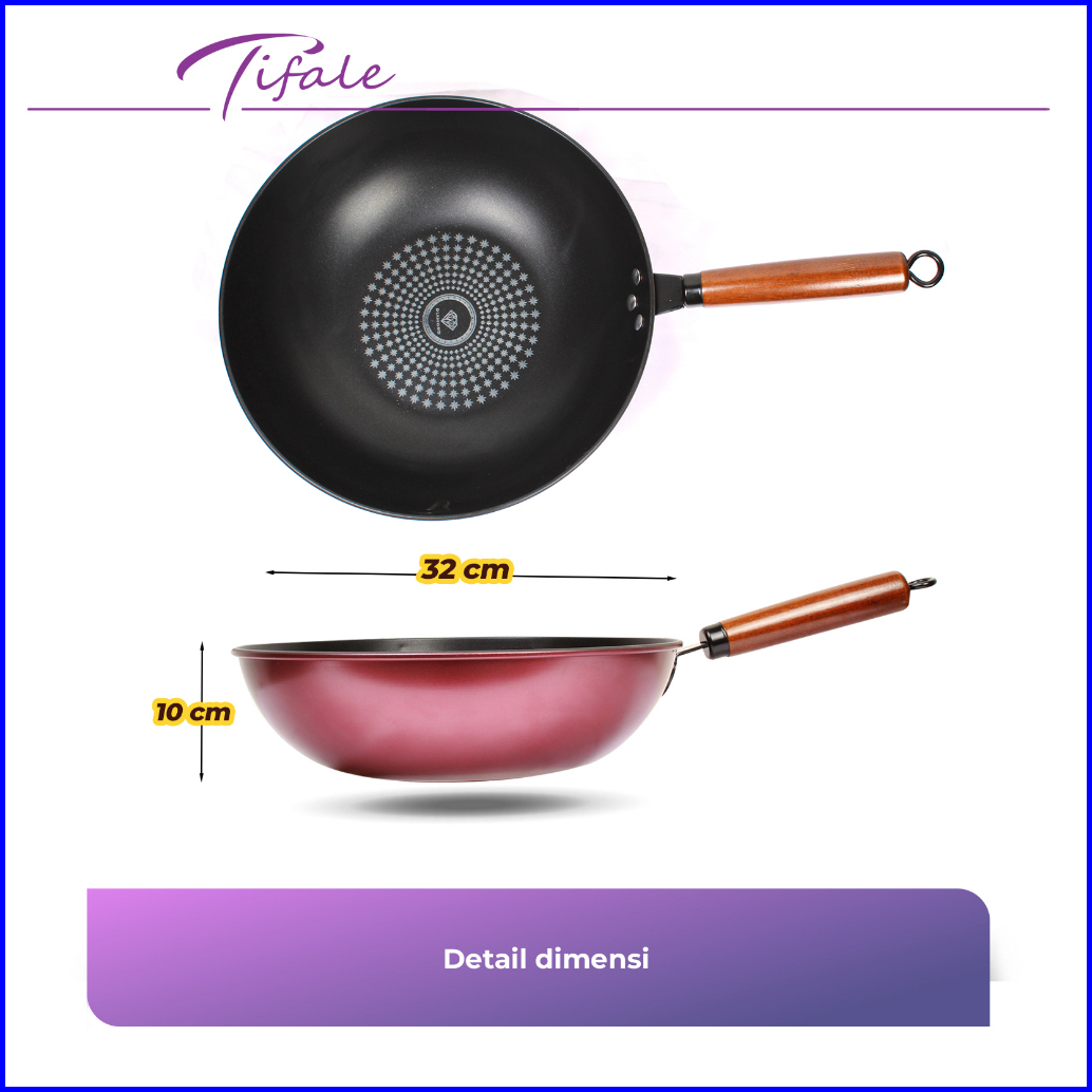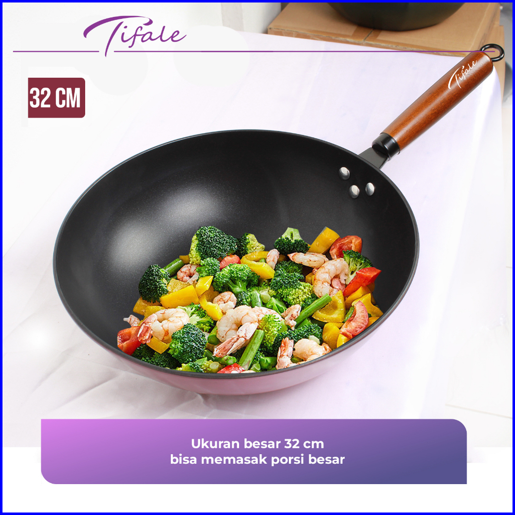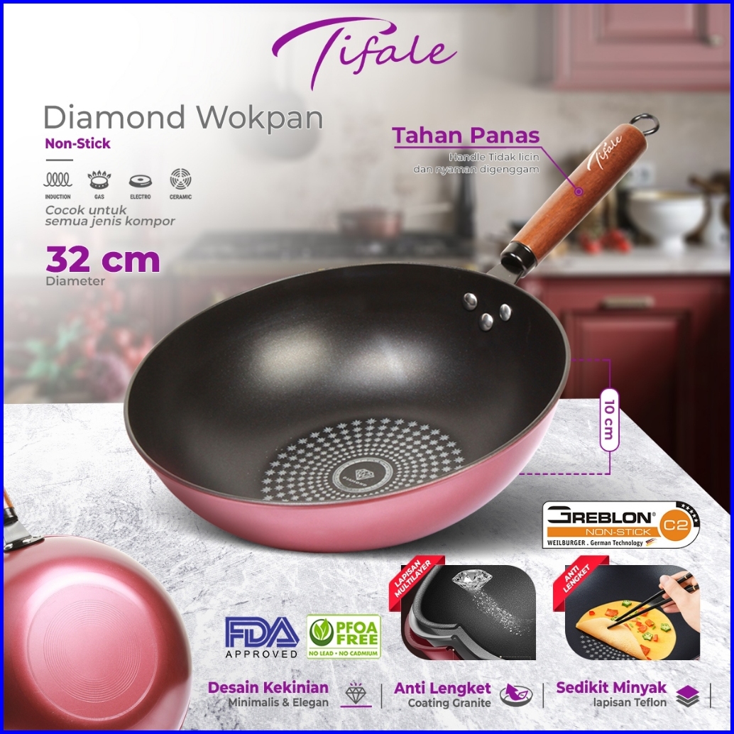 Ready Stock Tifale Diamond Wokpan Wajan Penggorengan Anti Lengket Batu Medis Ukuran 32cm