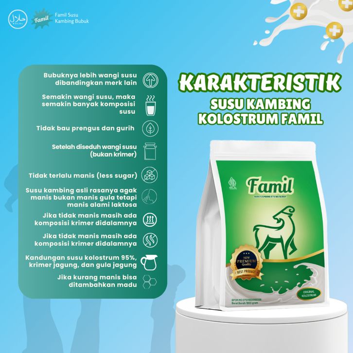 Susu Kambing Etawa Bubuk Original Kolostrum 1000 9ram / 1Kg Famil Murni Colostrum Lebih Kaya Manfaat & Nutrisi Kalsium