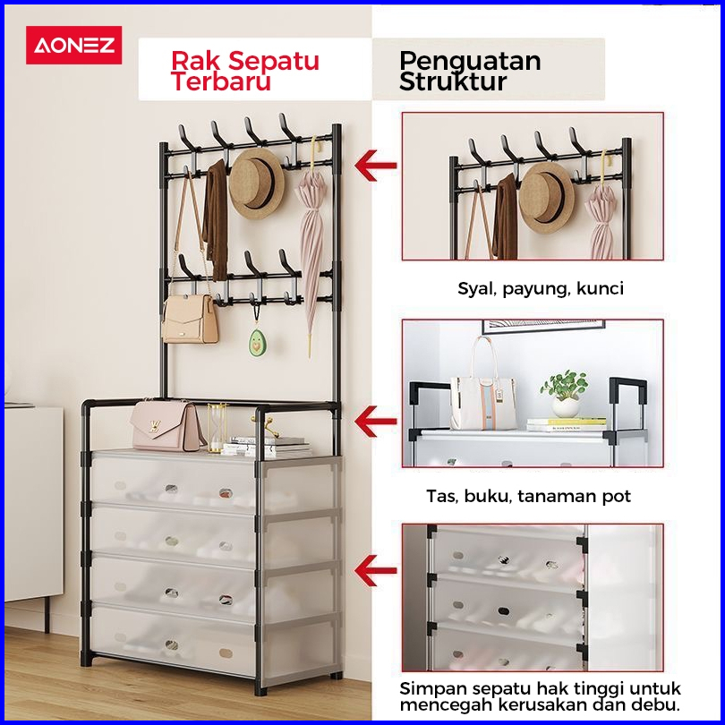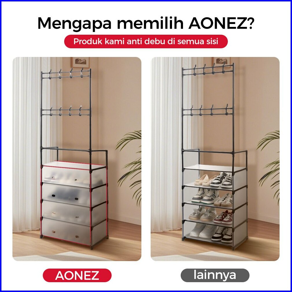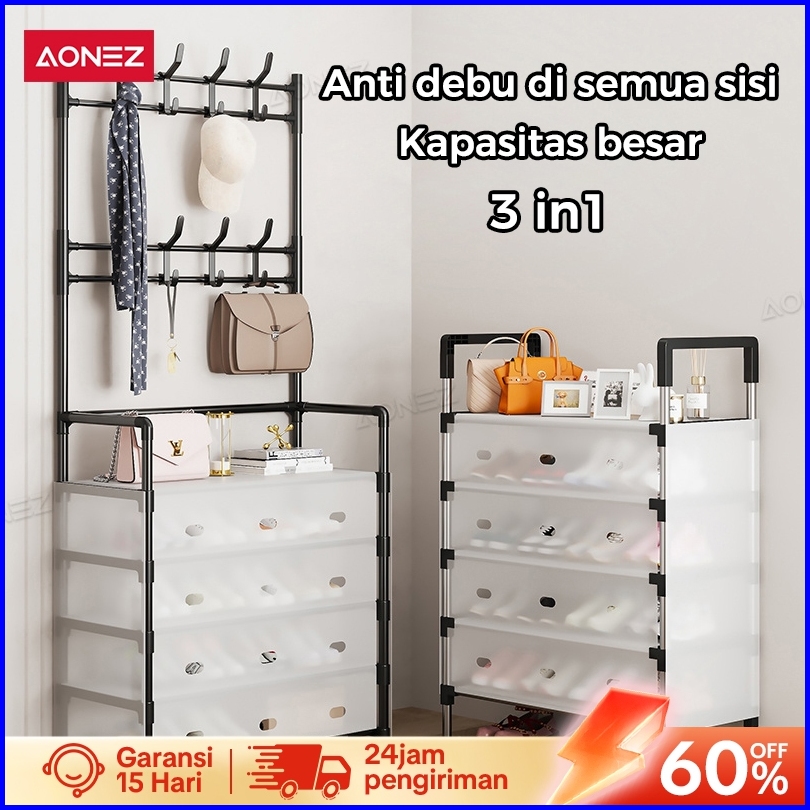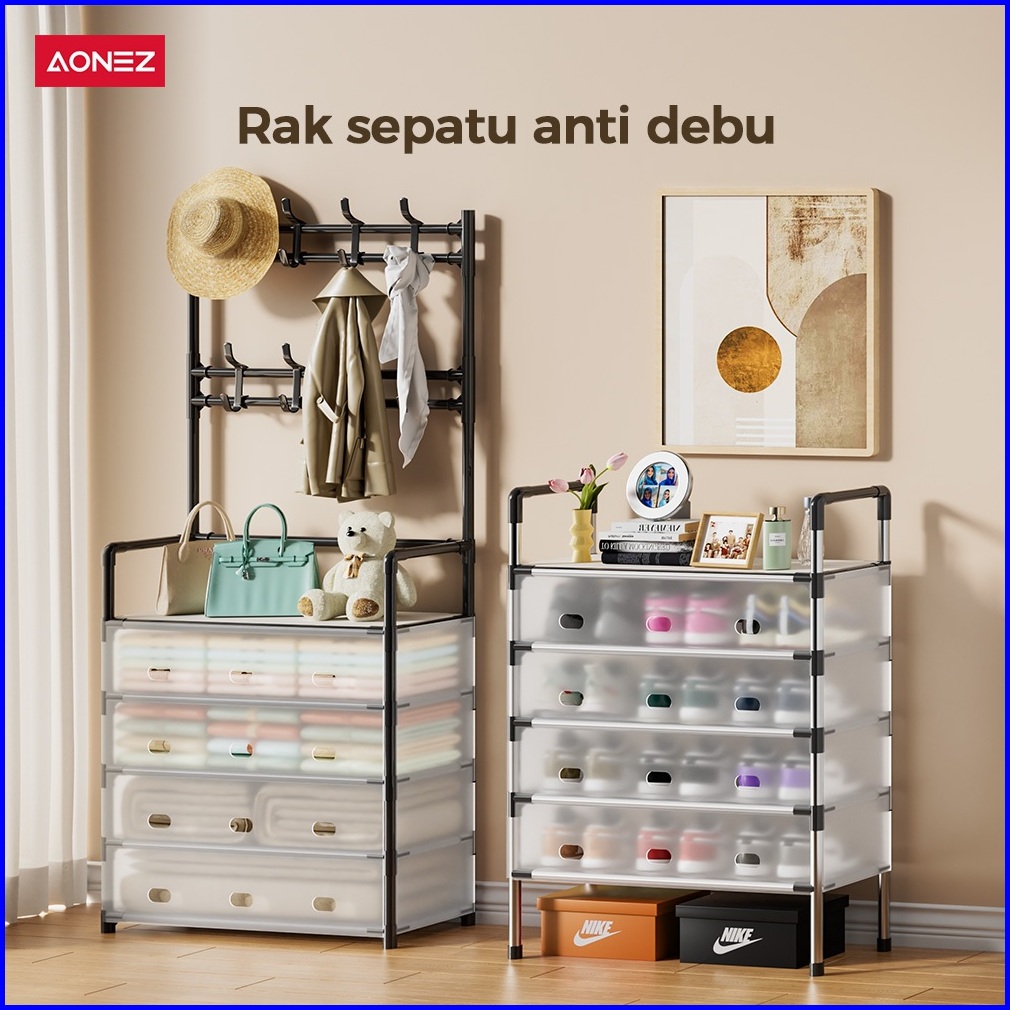 Aonez Rak Sepatu Tertutup Anti Debu Serbaguna Gantungan Tas Pakaian Rak Penyimpanan Dengan Penutup Penyimpanan Gantung