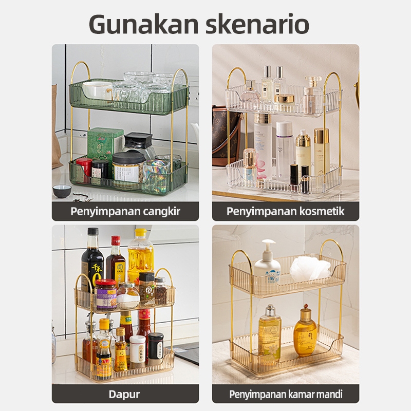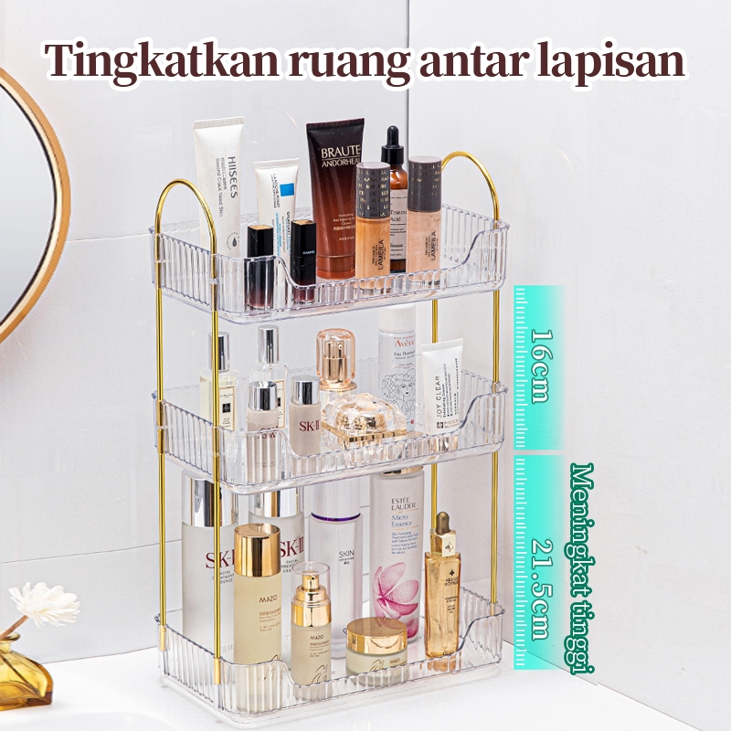 Rak Rias Lapis Ganda Rak Makeup Gold Rak Kosmetik Tingkat Mewah Rak Aqua Gelas Estetik