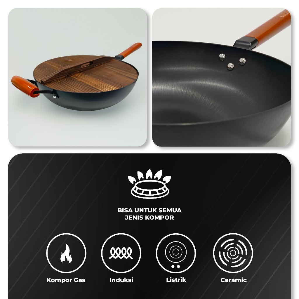 KOCH&BACKEN Black Carbon Steel Nitriding Deep Fry 32cm - Wajan Kuali Penggorengan Panci Anti Lengket