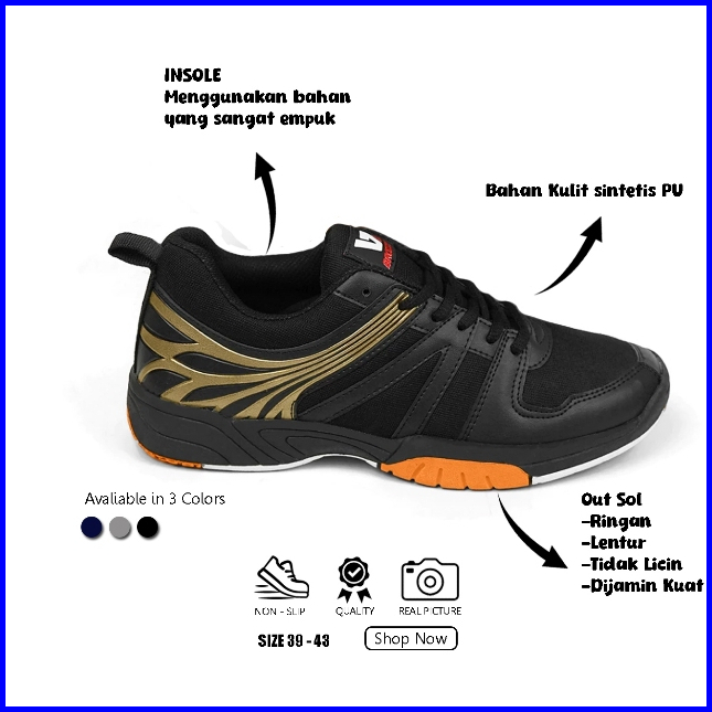 Brozzy Sepatu Badminton Pria Bz51 Sepatu Olahraga Bulutangkis Lari Joging Senam Original Kuat