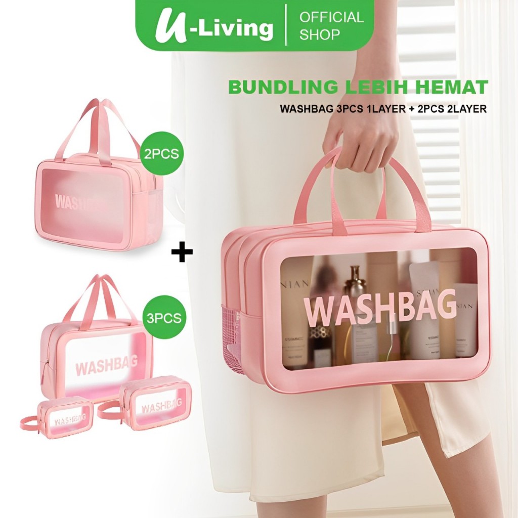 U-Living Bundle 5Pcs Washbag Tas Kosmetik Transparan Tas Make Up Travel Bag Organizer AOB002