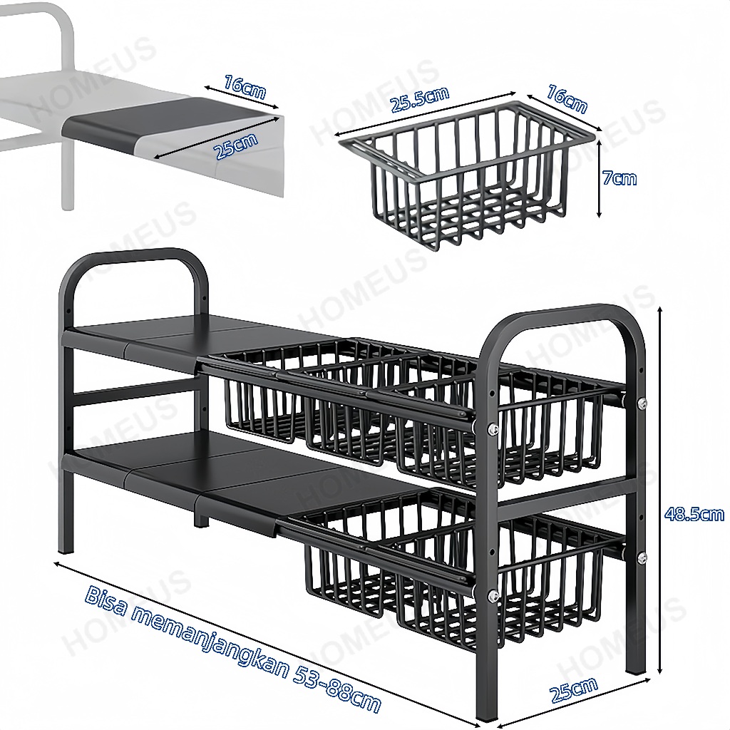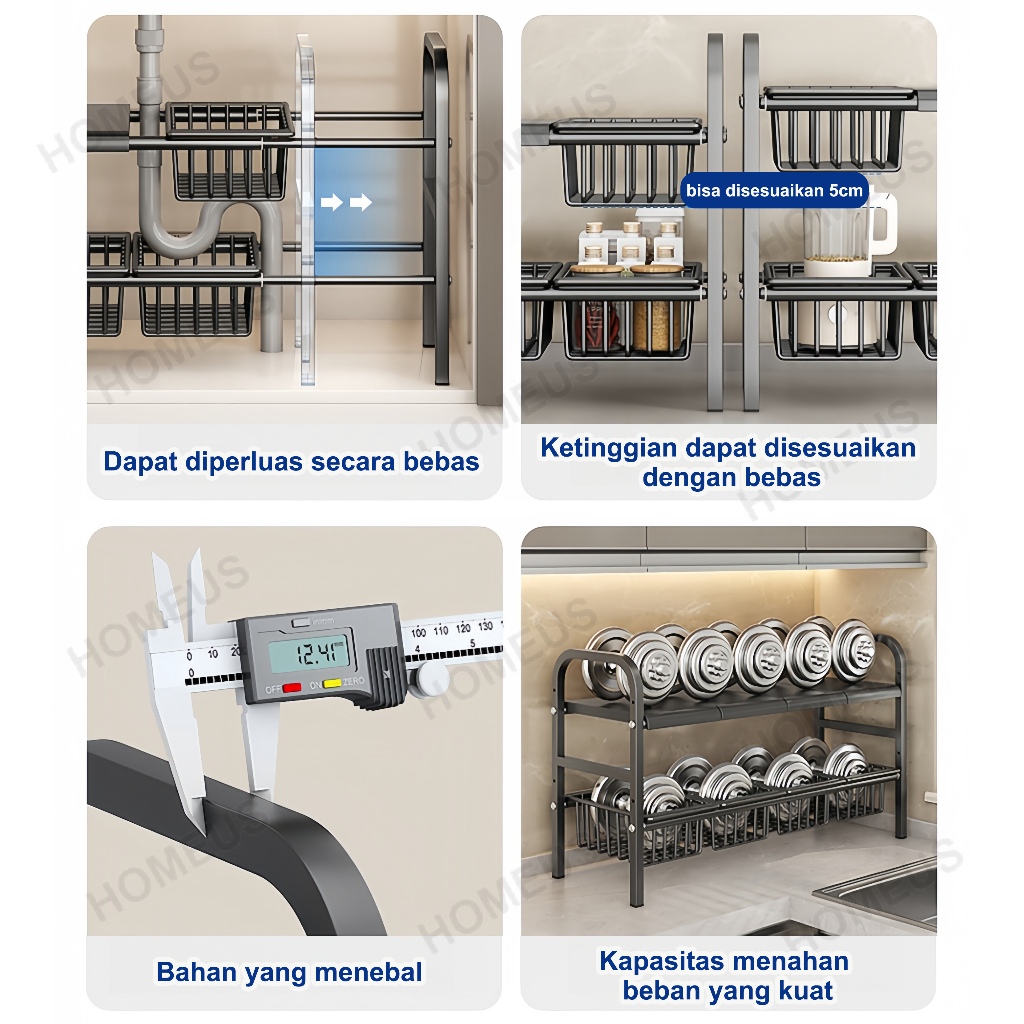 Homeus Rak Dapur Stainless Steel yang Dapat Diperluas Rak Dapur Dapur Rak Panci Rak Wastafel Rak Serbaguna