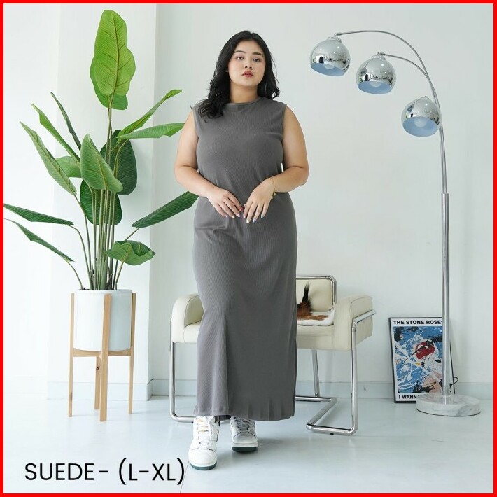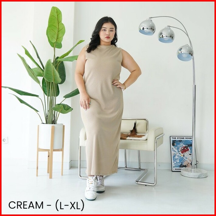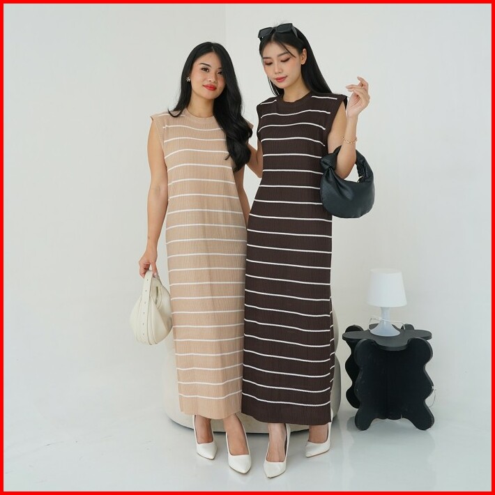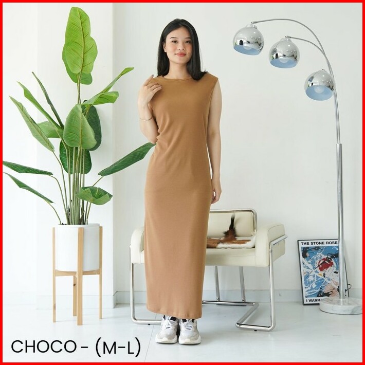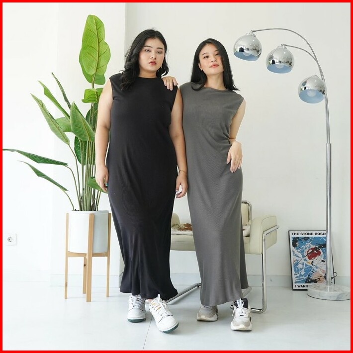 Aziza Long Manset Inner Dress Gamis Rajut Tanpa Lengan Jumbo Bodycon