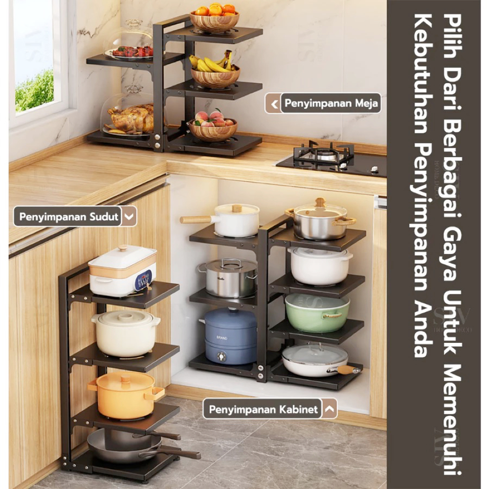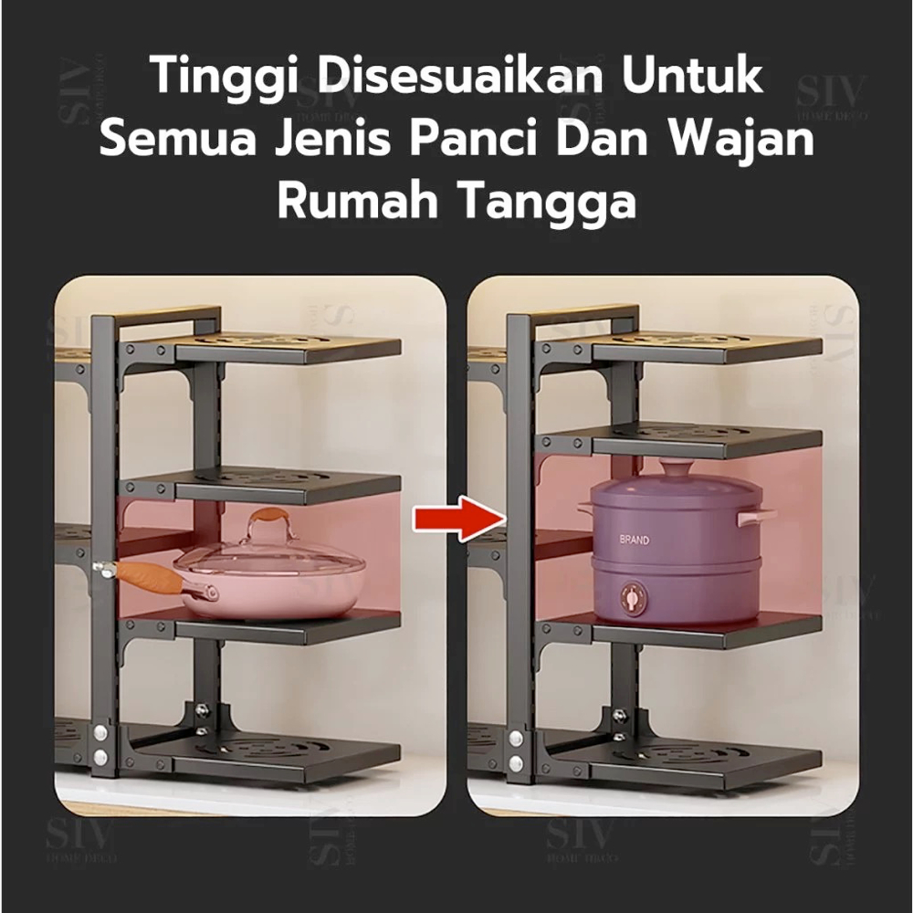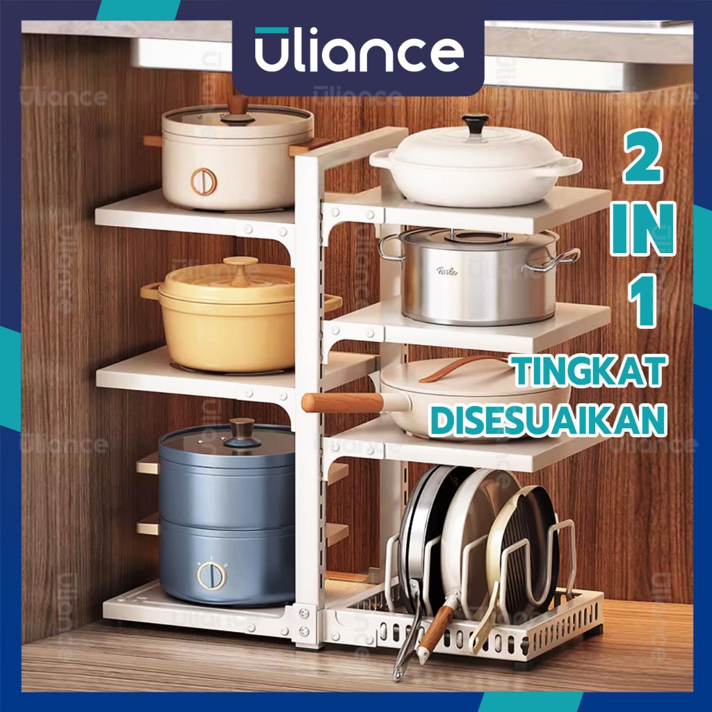 ULIANCE Rak Panci Wastafel Dapur Di Bawah Rak Rak Pot Rak Panci Susun Rak Bawah Wastafel Rak Dapur Stainless Steel (3/4/