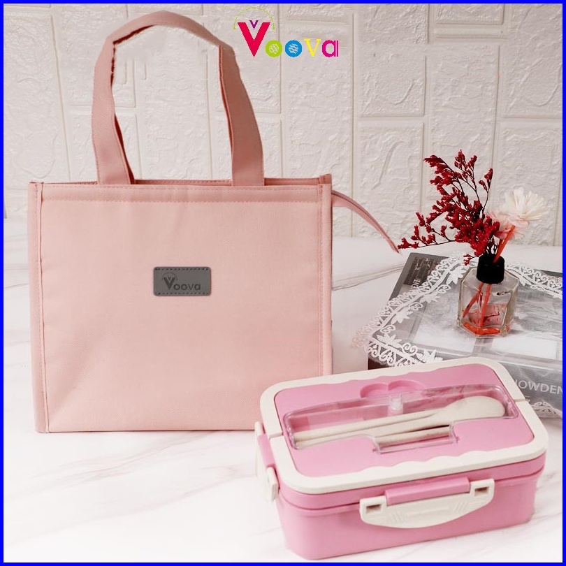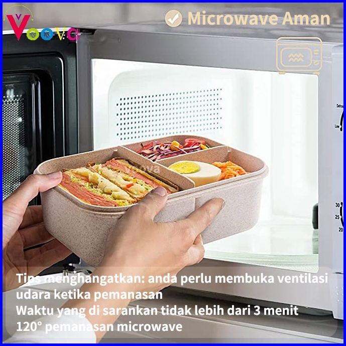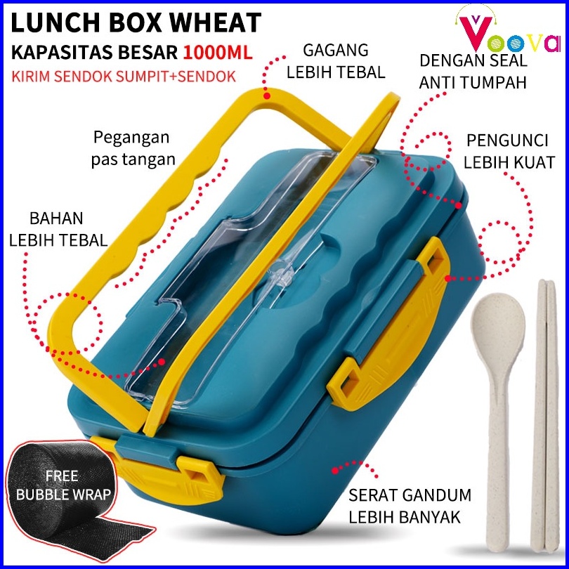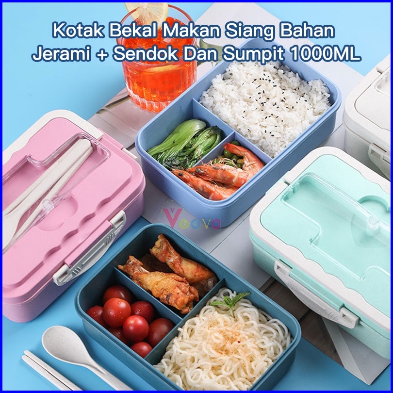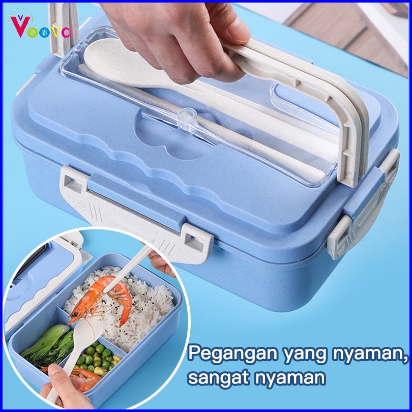 Voova Lunch Box Kotak Bekal Makan Siang Bahan Jerami Pegangan Melengkung Sendok Dan Sumpit Memiliki Kemasan Karton Bpa F