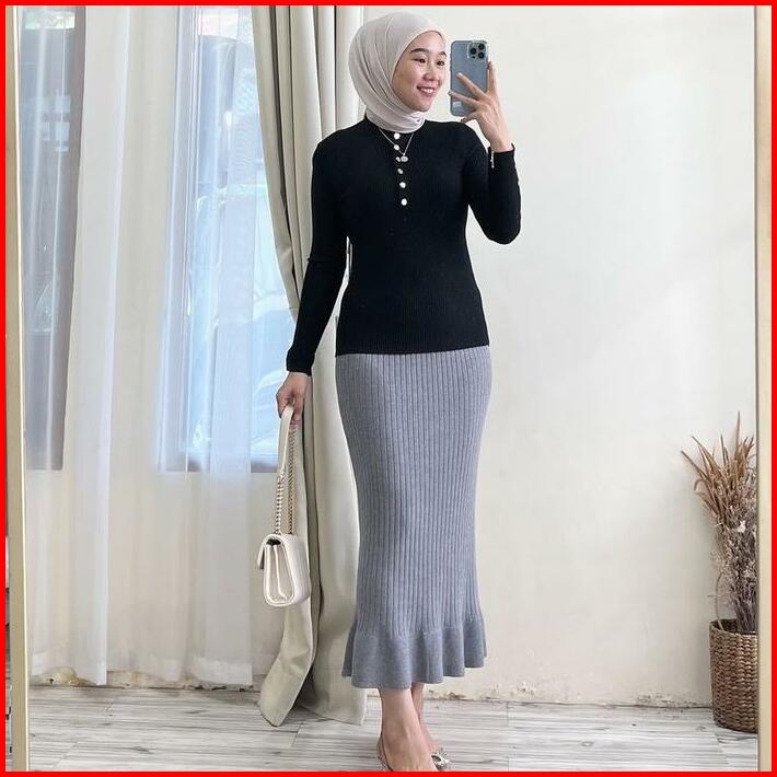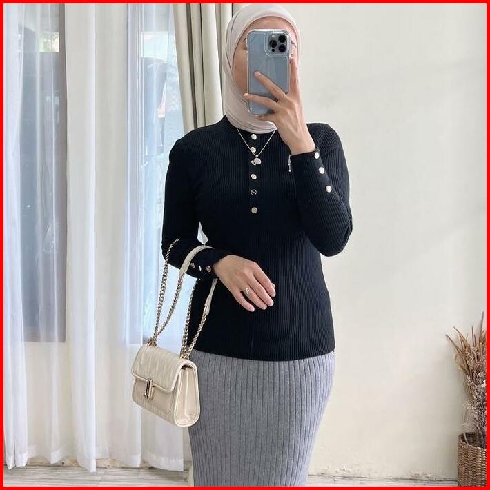 Atasan Knit Kancing Premium Inner Inara Daleman Muslim Manset Daleman Panjang Blouse Knit Premium Kancing Aktif