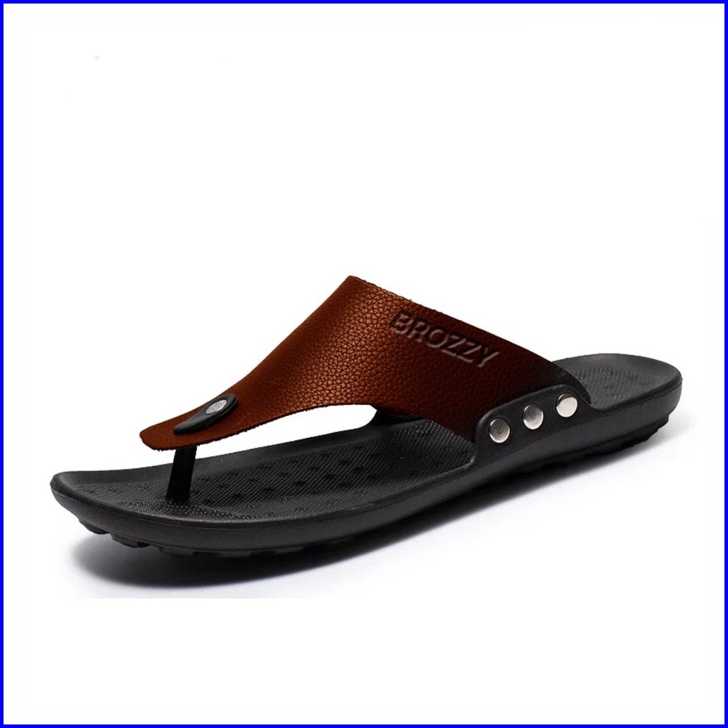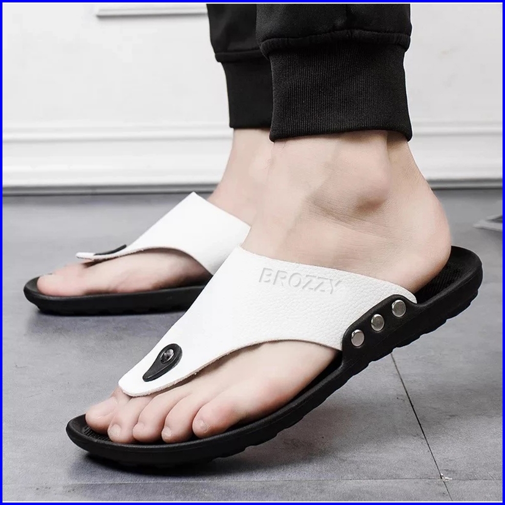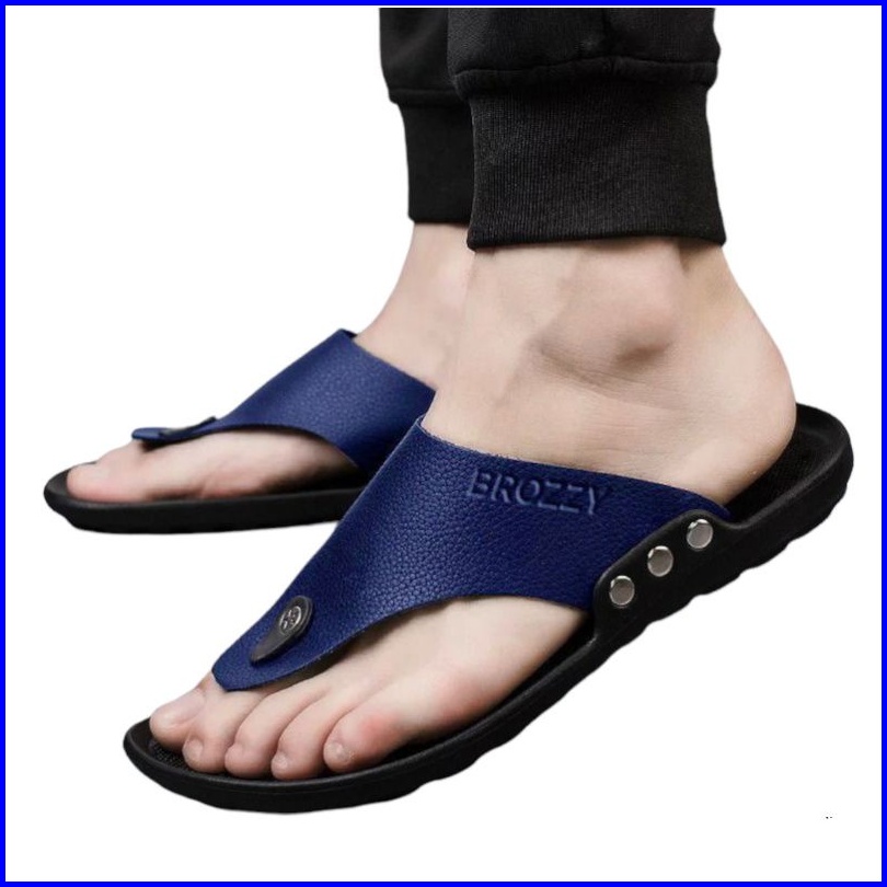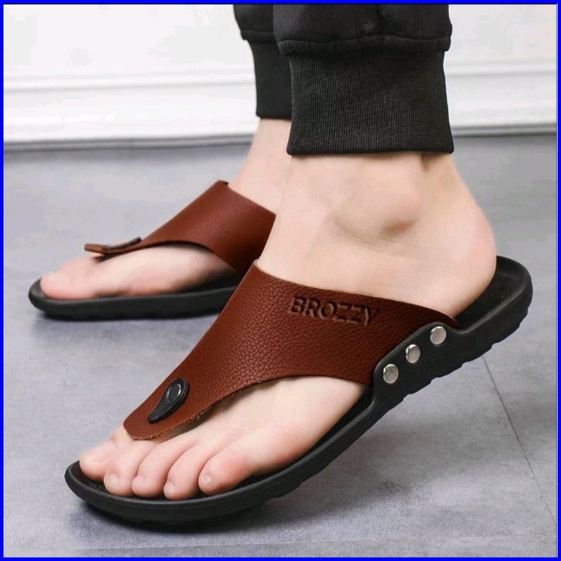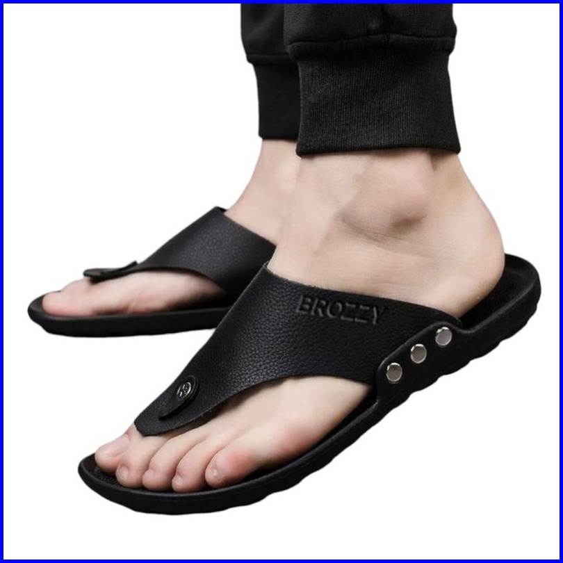 Brozzy For You Sandal Japit Kulit Pria B02 Santai Jepit Nyaman Empuk Anti Putus