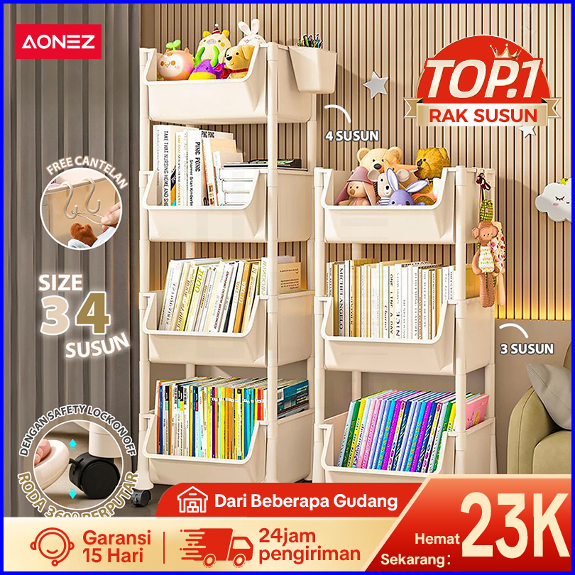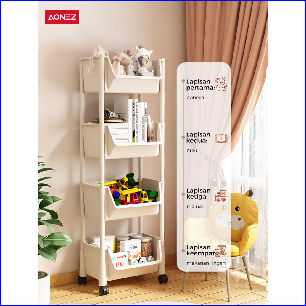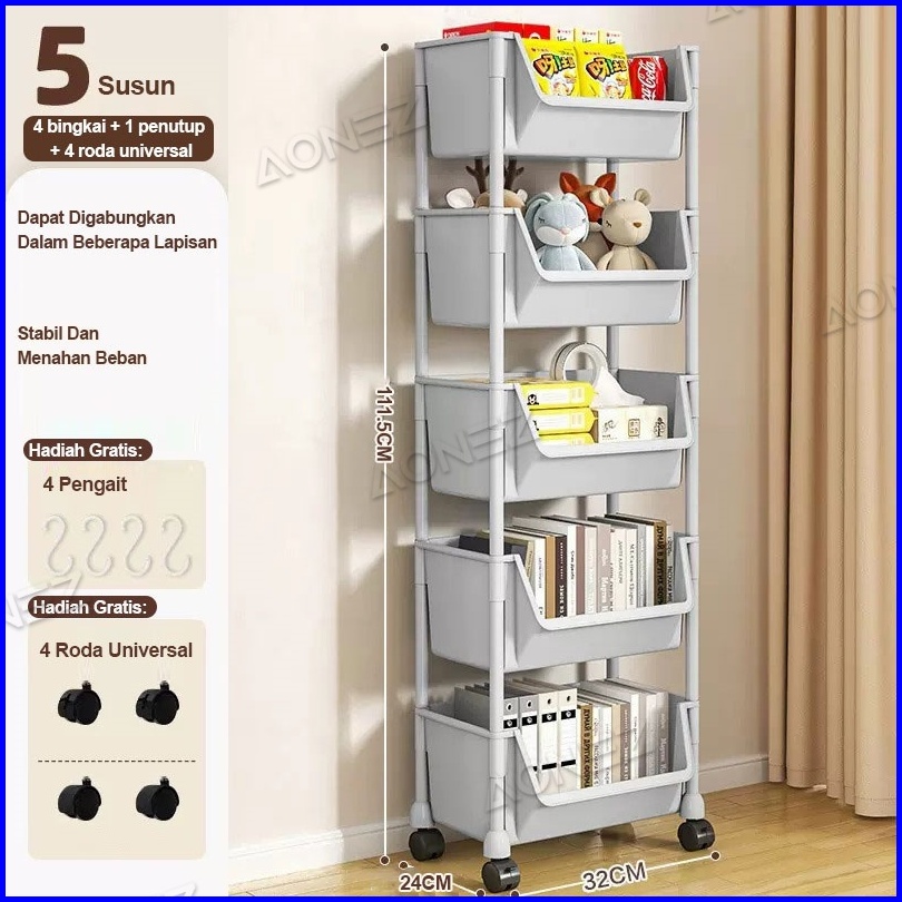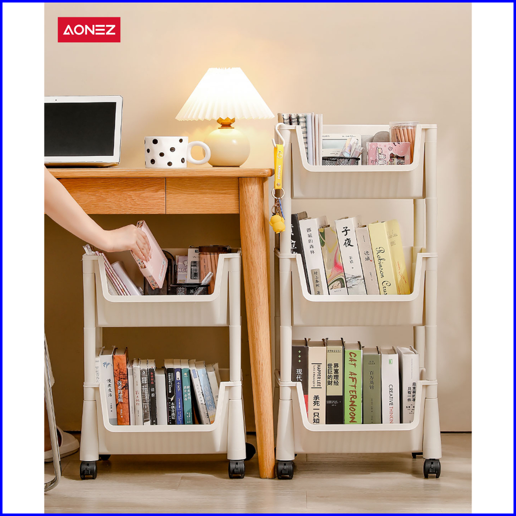 K-aonez Susun Serbaguna Tempat Rak Buku Anak Lemari Buku Plastik Rak Portable Roda Rak Mainan Rak Roda Toy Storage Rak S