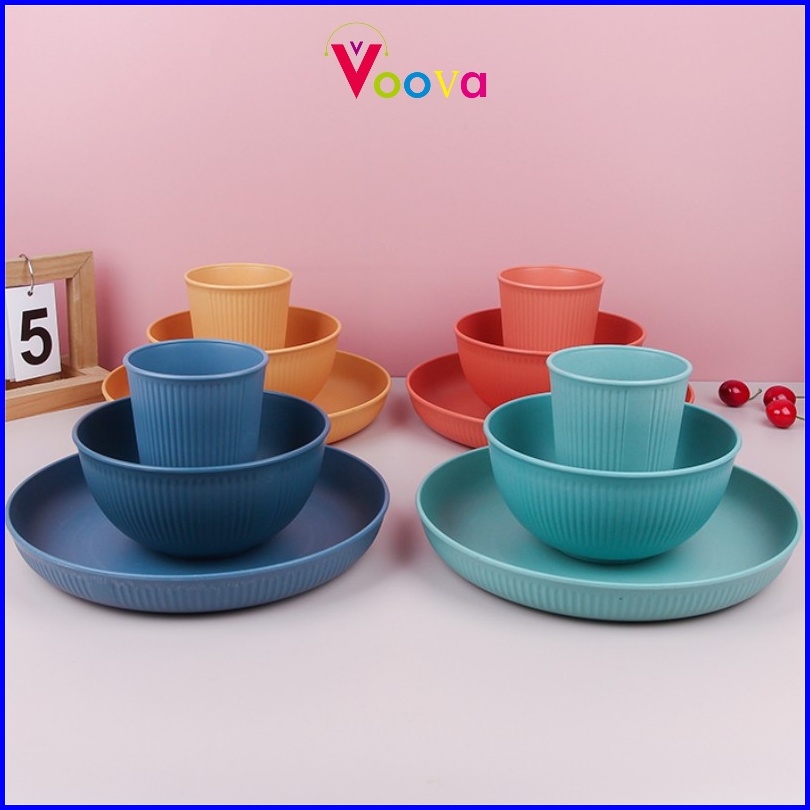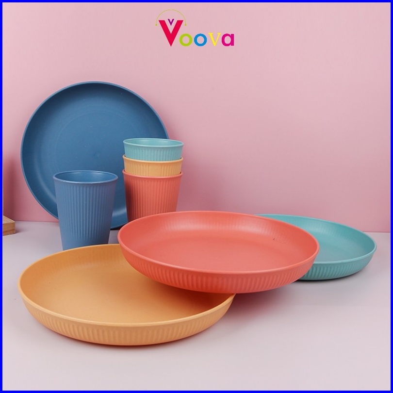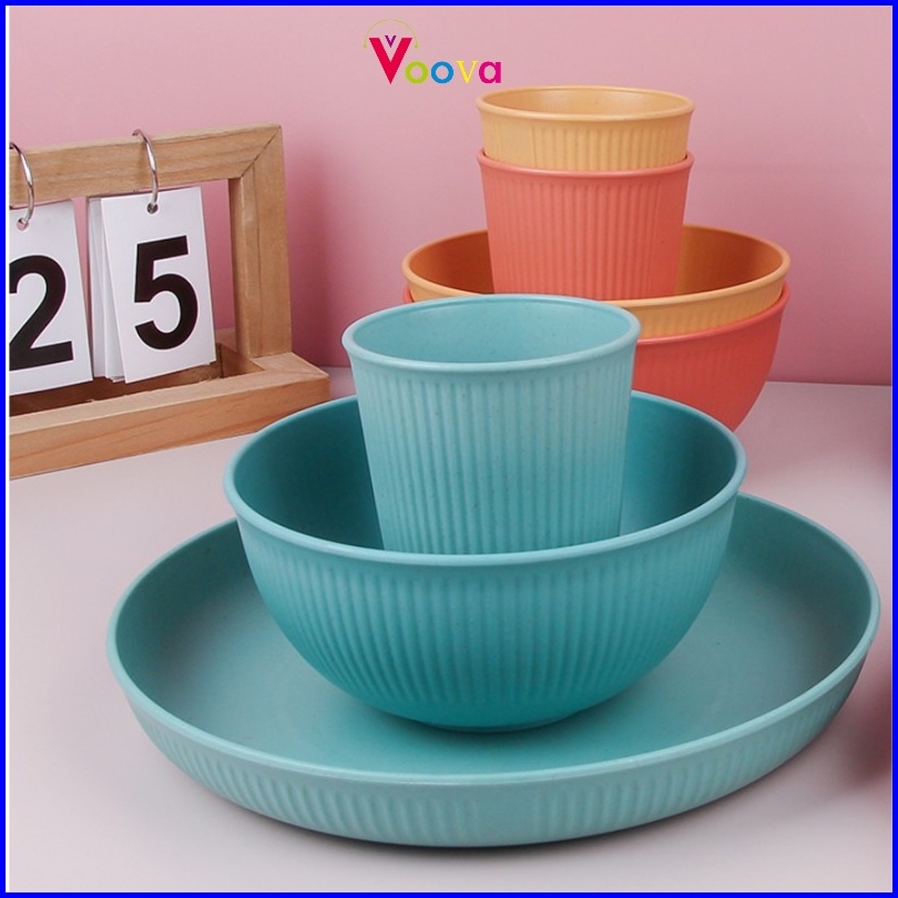 Voova Peralatan Makan Eco Friendly Peralatan Makan Warna Pastel Cup Piring Dan Mangkuk Bpa Free