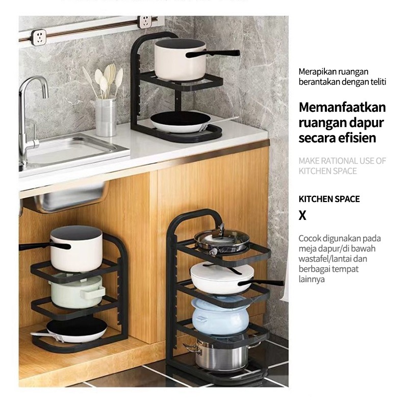Rak Panci Wastafel Dapur Di Bawah Rak Rak Pot Rak Panci Susun Rak Bawah Wastafel Rak/ Dapur Stainless Steel (2/3/4 Tingk