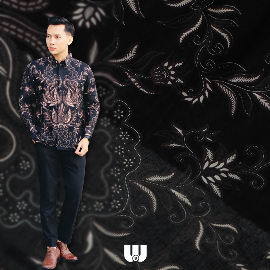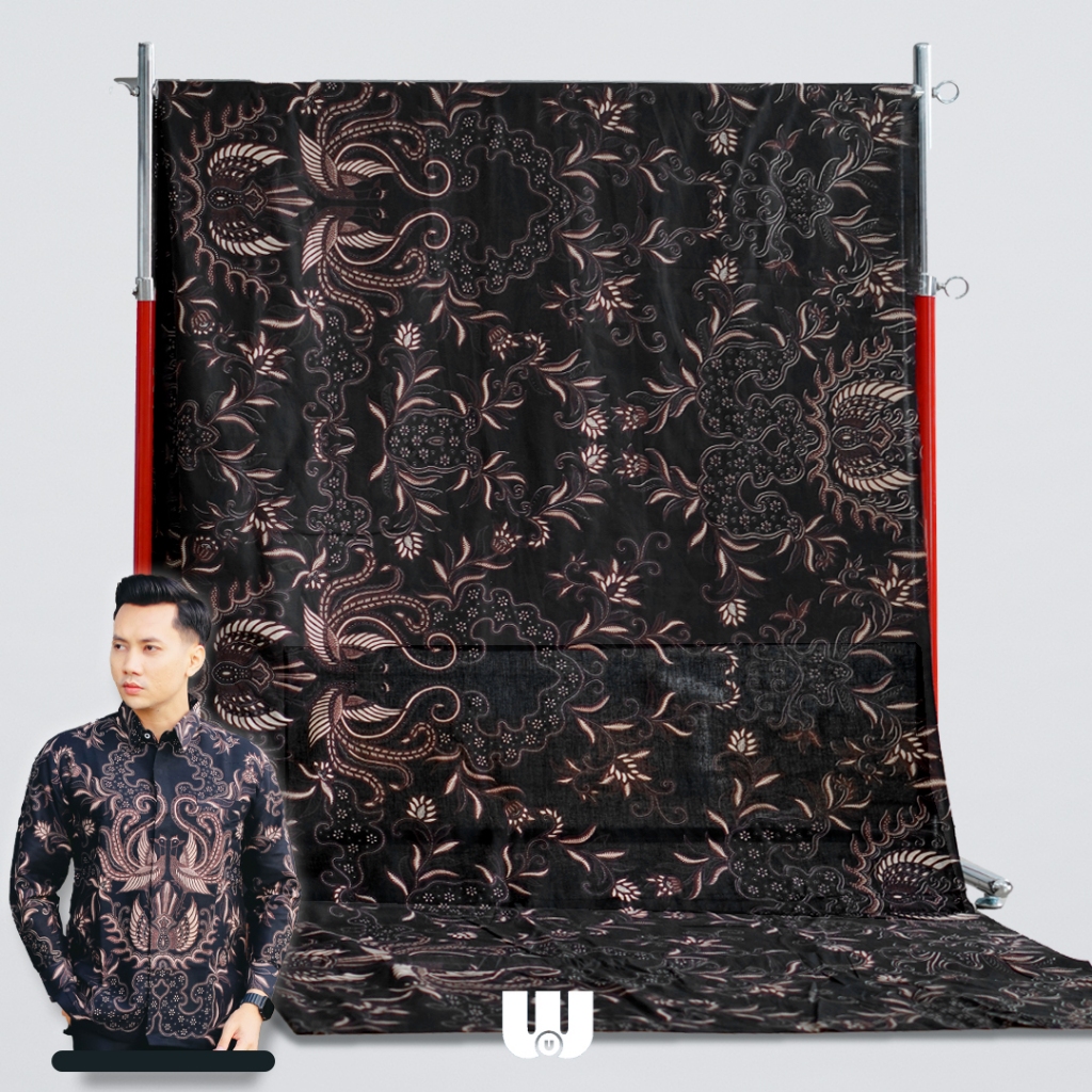 Woubatik Official- Kain Batik Solo Modern Premium Ganendra Bahan Meteran Katun Motif Hitam Gelap