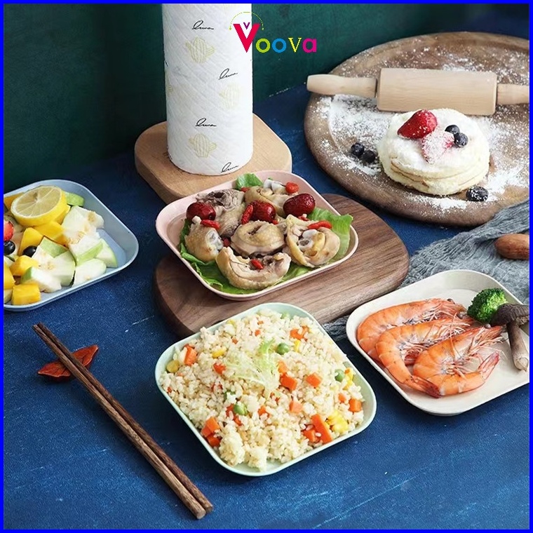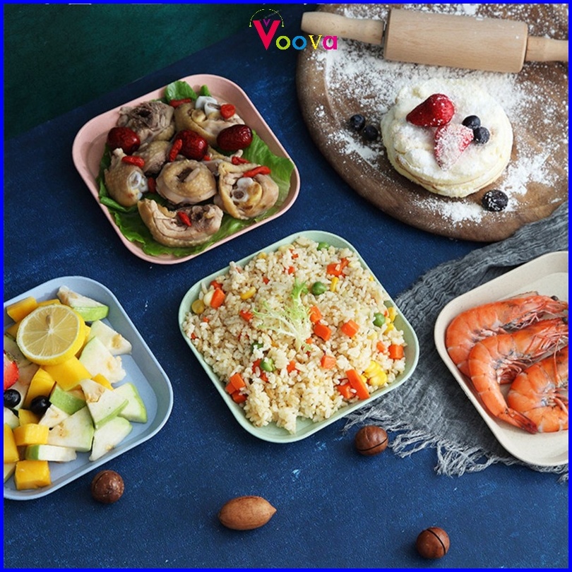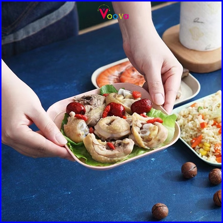 Voova Wheat Straw Piring Persegi Meja Makan Dim Sum Piring Makanan Ringan Piring Rumah Tangga Tulang Piring Plastik Bpa