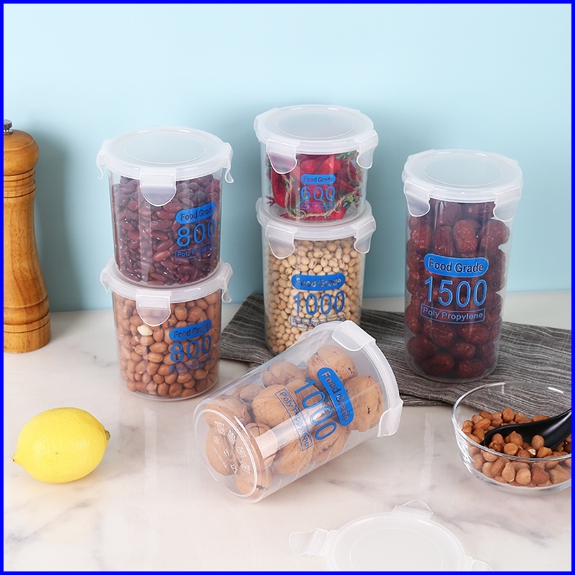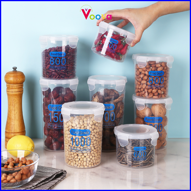 Voova Tangki Tertutup Melingkar Toples Plastik Toples Plastik Bening 600 800 1000 1500ml