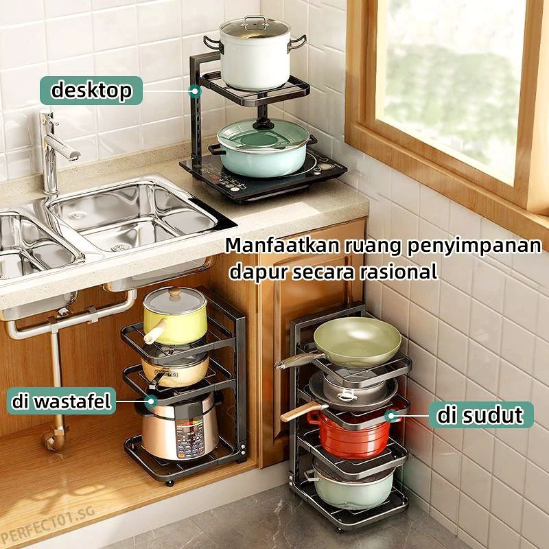Rak Panci Susun Bawah Dapur Rak Susun 2 3 4 Wadah Penyimpanan Panci Wajan Teflon