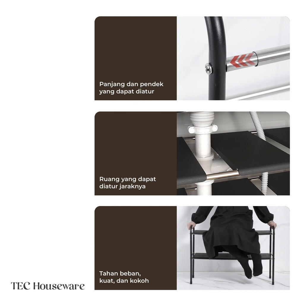 【TEC】SIKO Rak Susun Serbaguna Rak Bawah Wastafel Rak Penyimpanan Dapur Panci Flexible