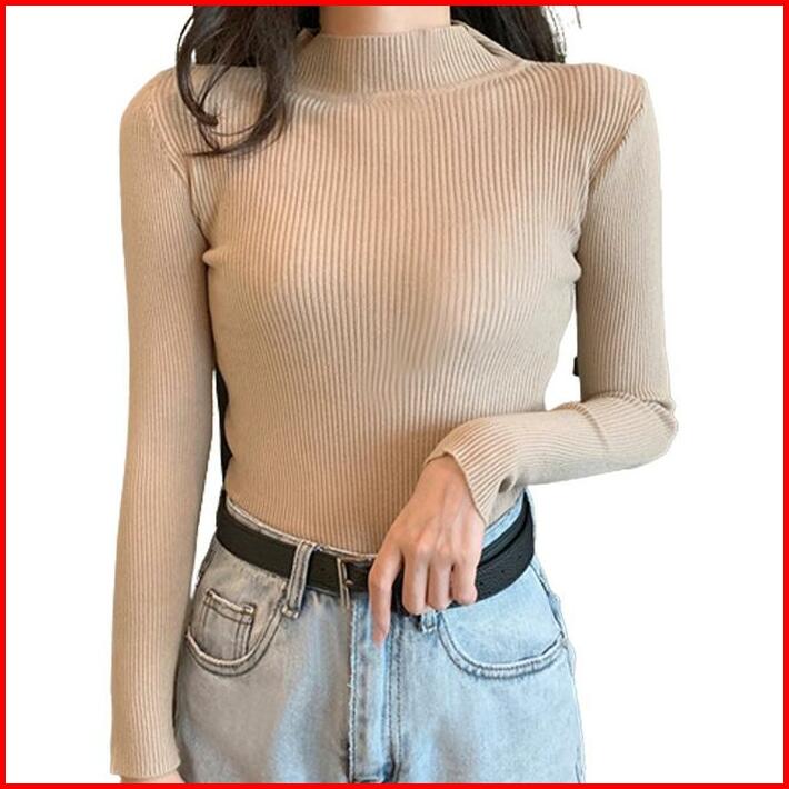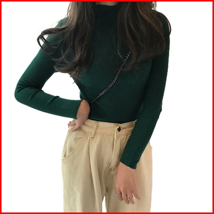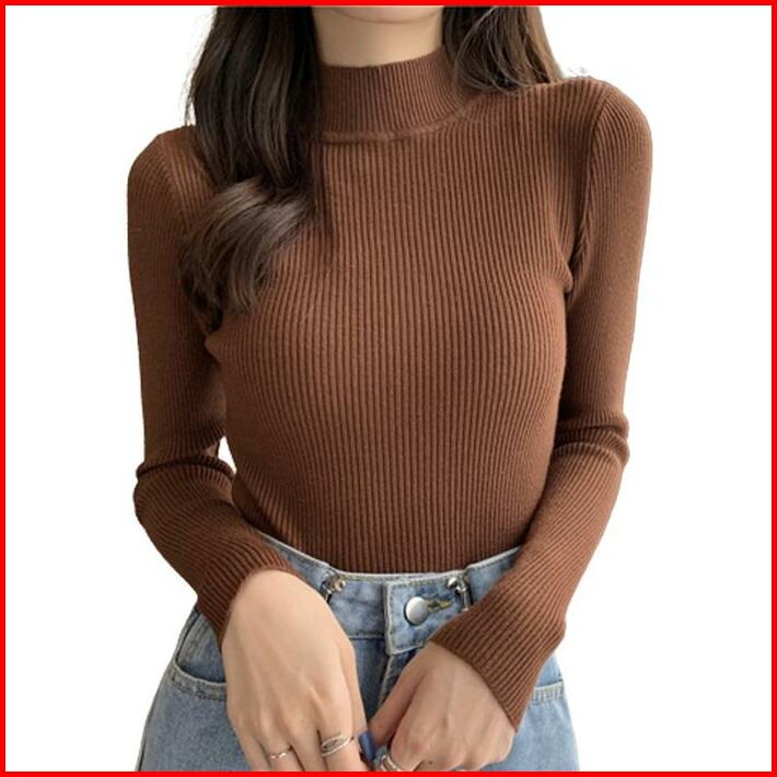 Atasan Turtleneck Knit Lengan Panjang Manset Rajut Wanita Inner Wanita Fit Knitwear