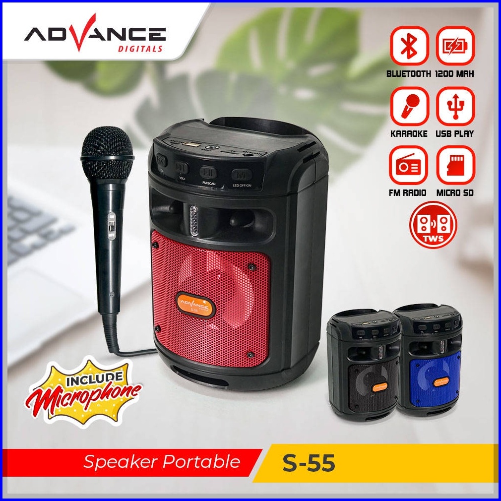 Ready Stockadvance Speaker Bluetooth Portable S-55 Free Mic Karaoke Salon Aktif Radio Fm Box Music Speaker Aktif Portabl