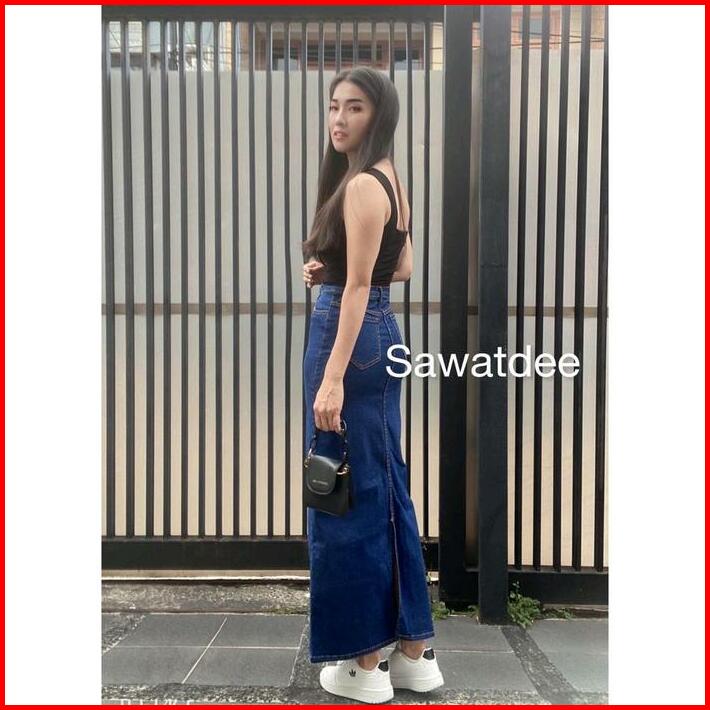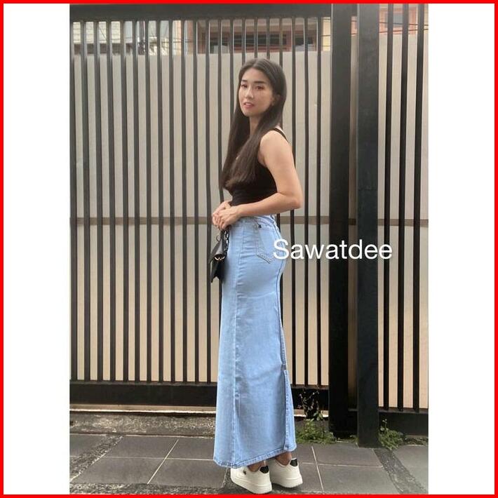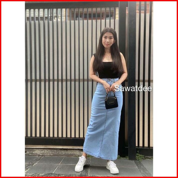 Rok Jeans High Waist Panjang Rok Jeans Kekinian Rok Span Panjang Melar Stretch Wanita Biru Pendek Cewek