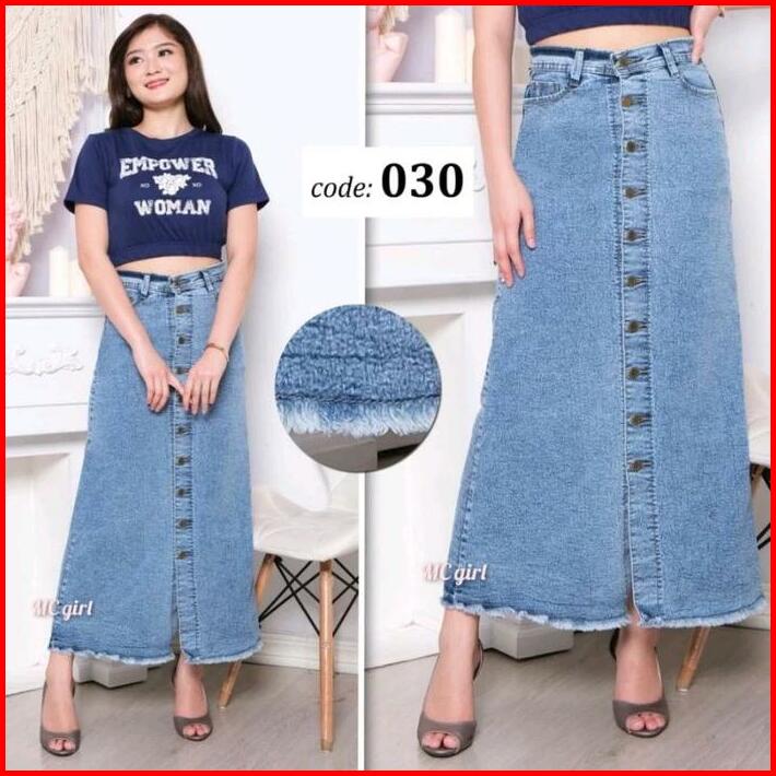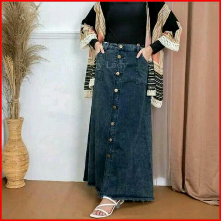 Rok Button Jeans Rok Kancing Jeans Rok Full Kancing Rawis Span Wanita