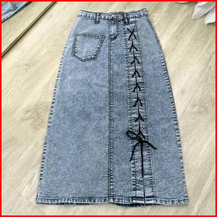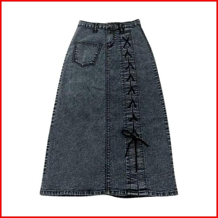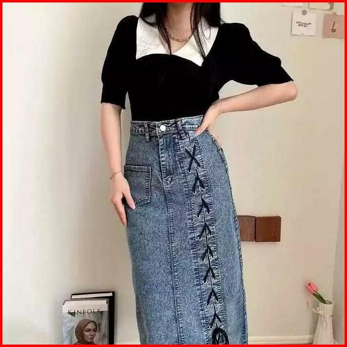 Nikita Skirt Rok Jeans Skrit Wanita Denim Span Tali Pita Tebal Nyaman