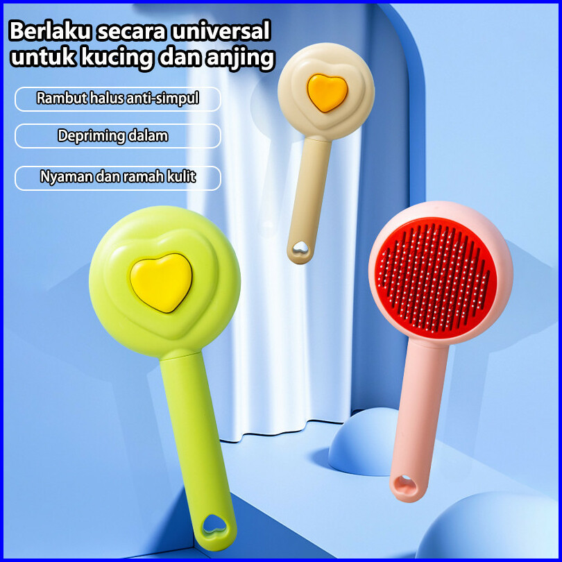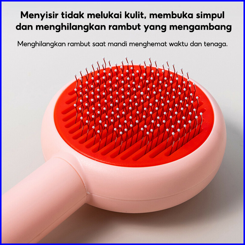 Folopets Sisir Kucing Anjing Otomatis Sisir Bulu Hewan Peliharaan Anti Kusut Tombol Sisir Grooming Animal Press Cat Pet