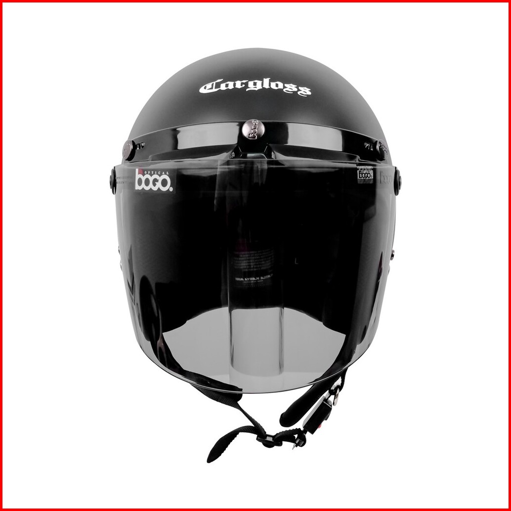 Cargloss Cfm Retro Visor Flat Smoke Helm Half Face - Black Doff