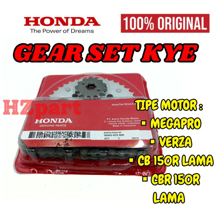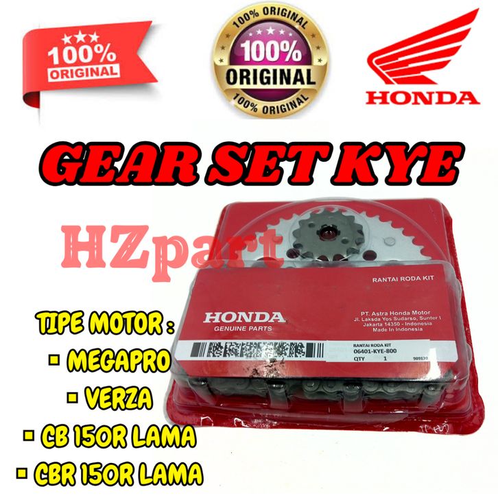 ASLI GEAR SET+RANTAI KODE-KYE HONDA MEGAPRO/VERZA/CB 15 R LAMA HONDA KYE KUALITAS ORINAL ASLI1%