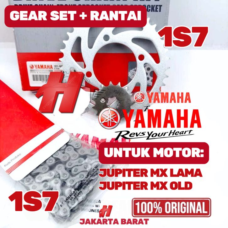 ORINAL GRANSI GEAR SET+RANTAI KODE 1S7 ORINAL YAMAHA JUPITER MX LAMA , JKUALITAS 1% YAMAHA YGP