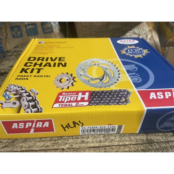 GEARSET PLUS RANTAI YAMAHA R15 R 15 V1 Dan V2 OLD 47 - 15 - 132H MERK ASPIRA