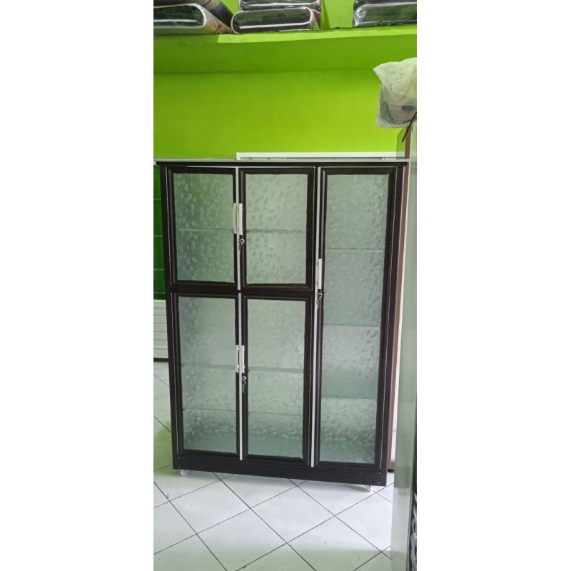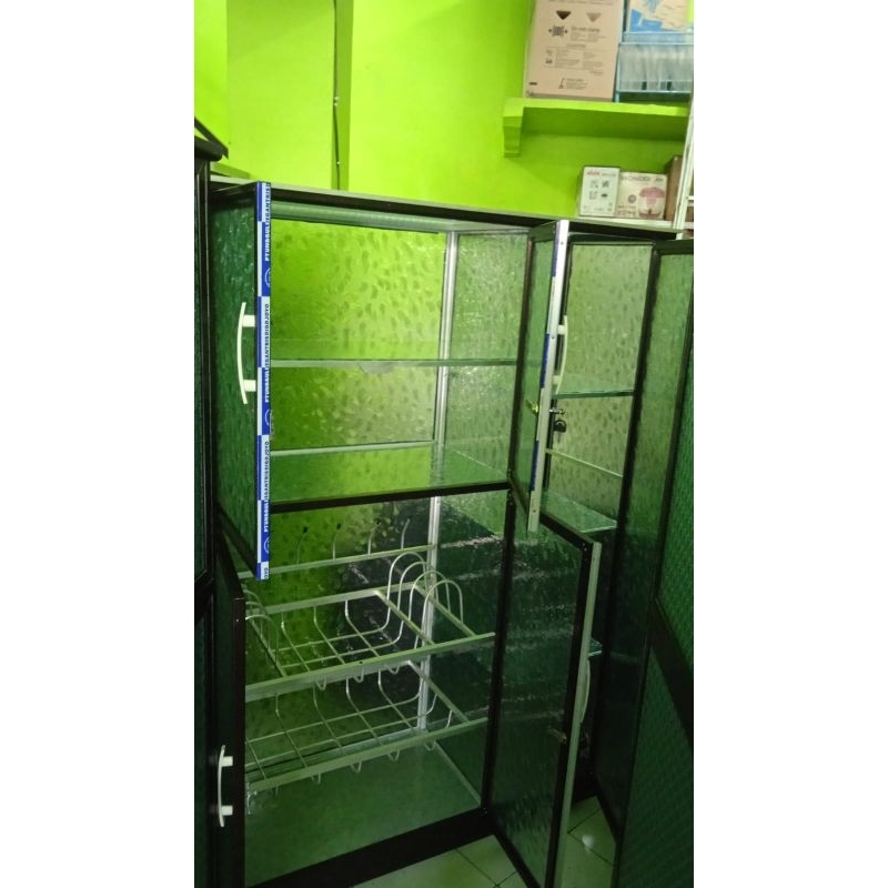 Rak Piring 3 Pintu Aluminium Cokelat Full Kaca Minimalis Kitchen Set Almini Alumunium Lemari Dapur Anti Karat Serbaguna