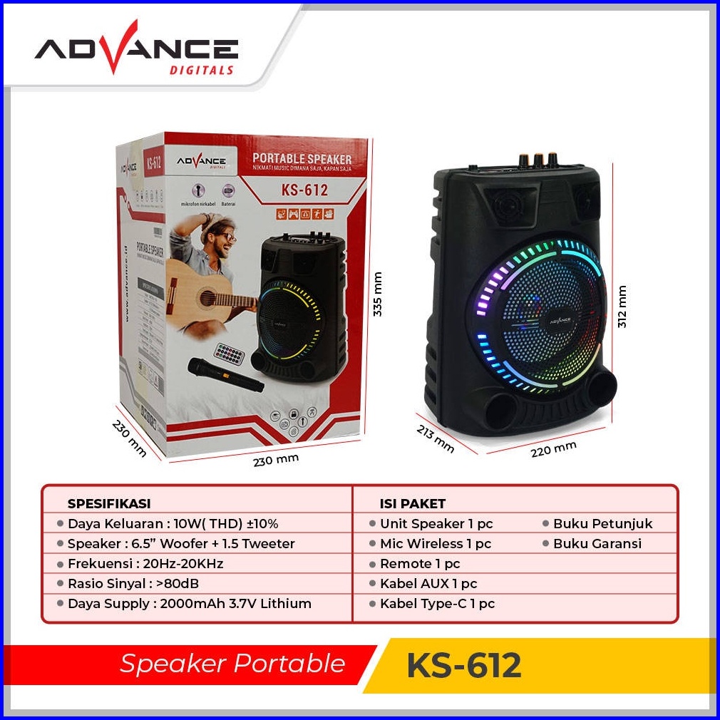 Ready Stockadvance 6.5 Inch Speaker Bluetooth Portable Ks-612 Free Mic Wireless