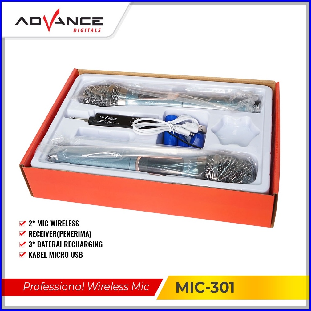 Ready Stockadvance Mic-301 Double Digital Mic Wireless Microphone Metalic Garansi Resmi 1 Tahun