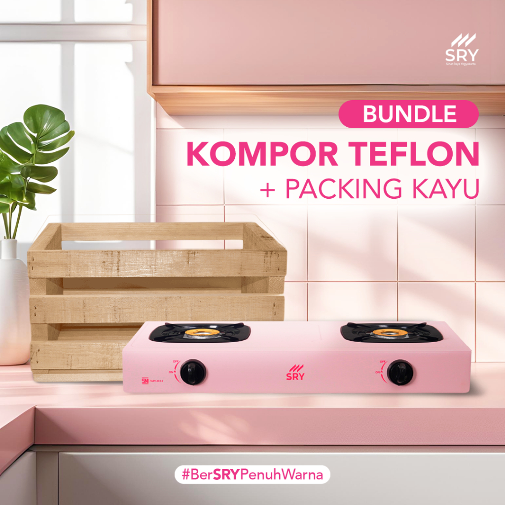 SRY Kompor Teflon + Packing Kayu | Kompor Teflon | Kompor 2 Tungku | Kompor Dapur Modern
