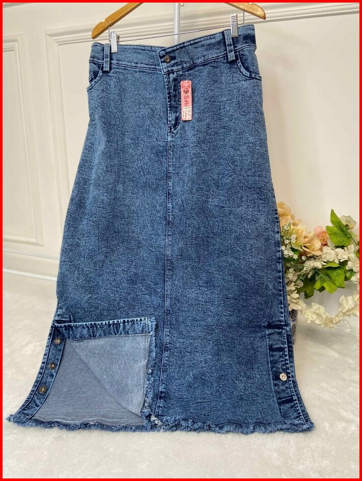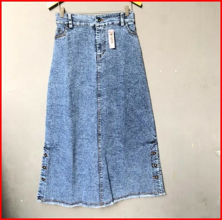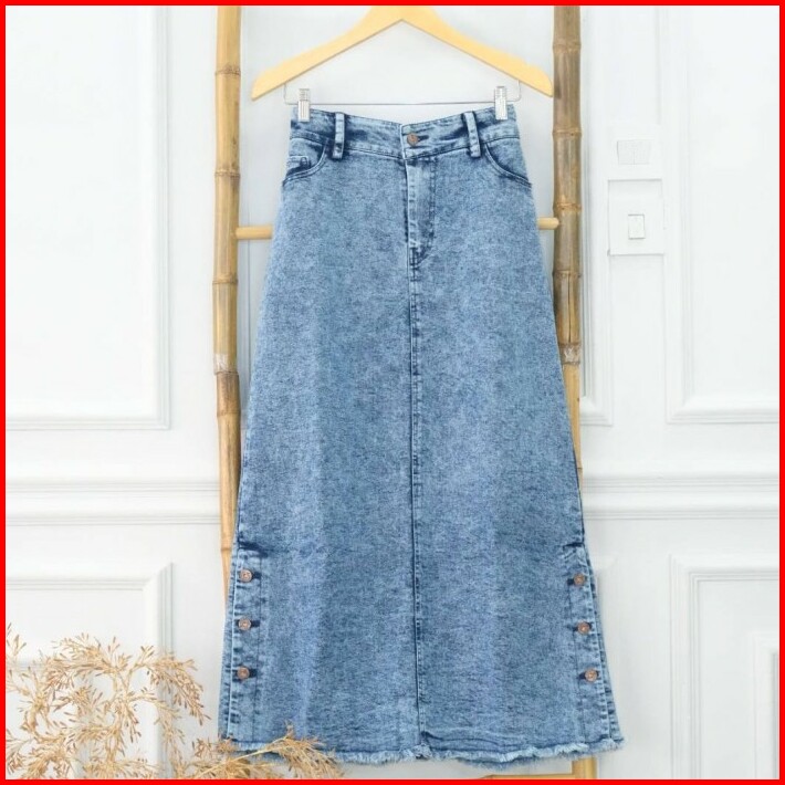 Rok Jeans Panjang Span Jumbo Rok Jeans Streetch Wanita Jumbo