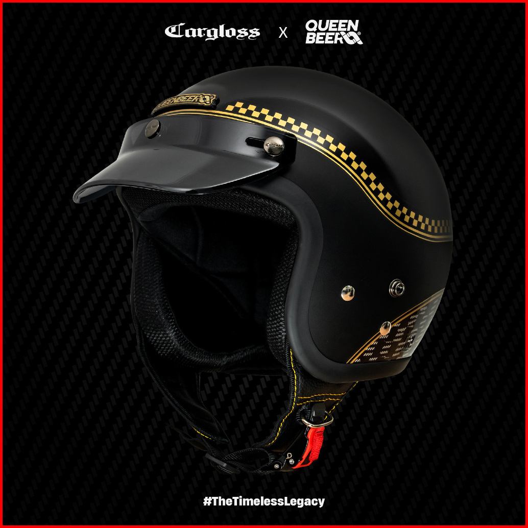 Cargloss Cfm X Queenbeer Retro Helm Half Face - Black