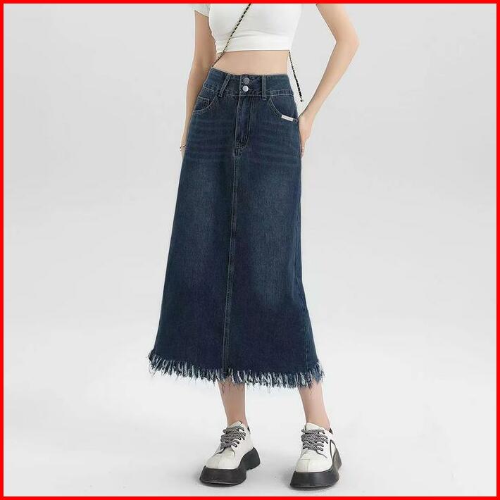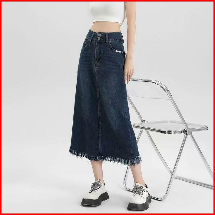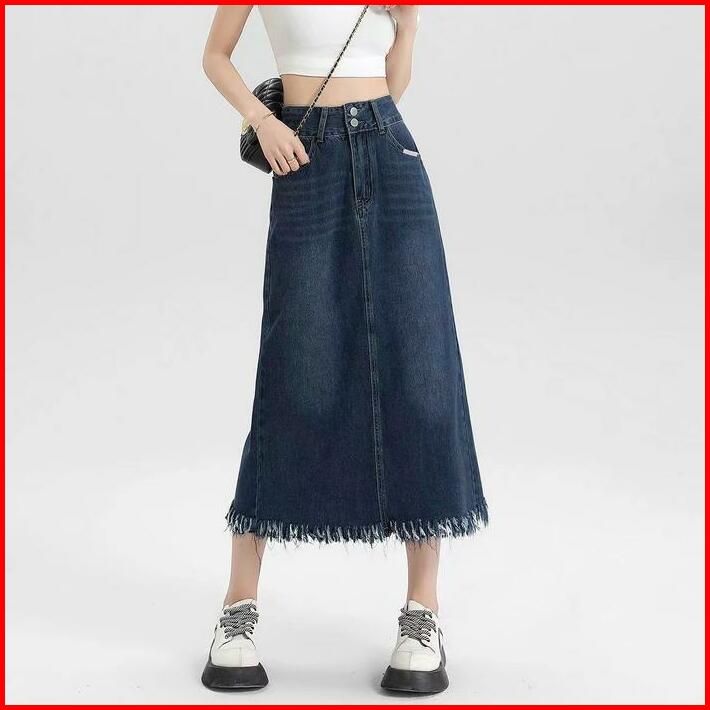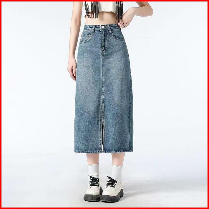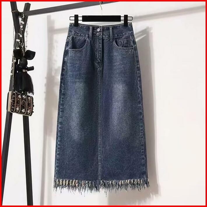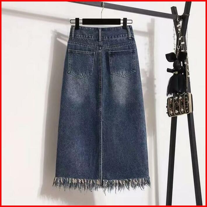 Rok Span Jeans Wanita Premium Rok Jumbo Denim Skirt Korean Style A-line Rok Jeans Bigsize High Waist