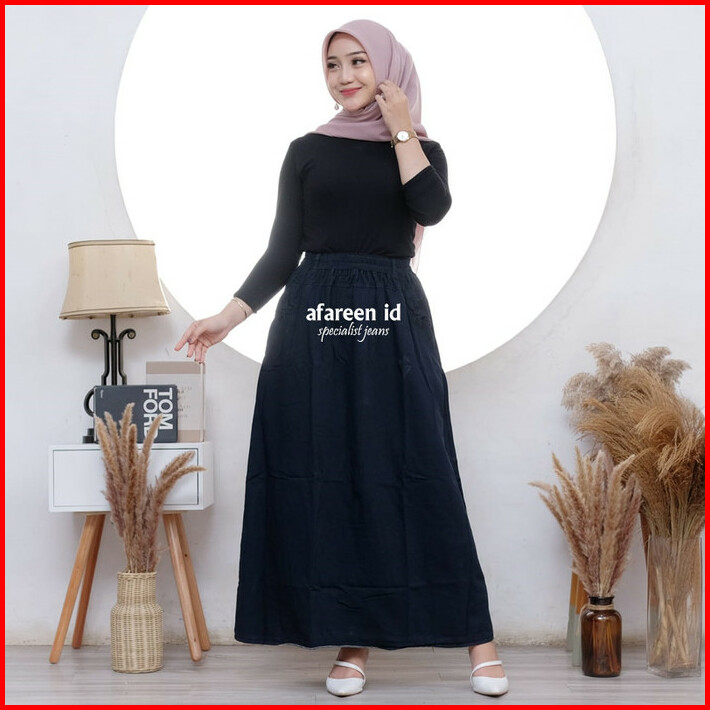 Rok Panjang Wanita Muslim Polos Rok Jeans Hitam Span Skirt Line A