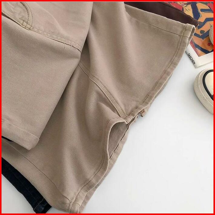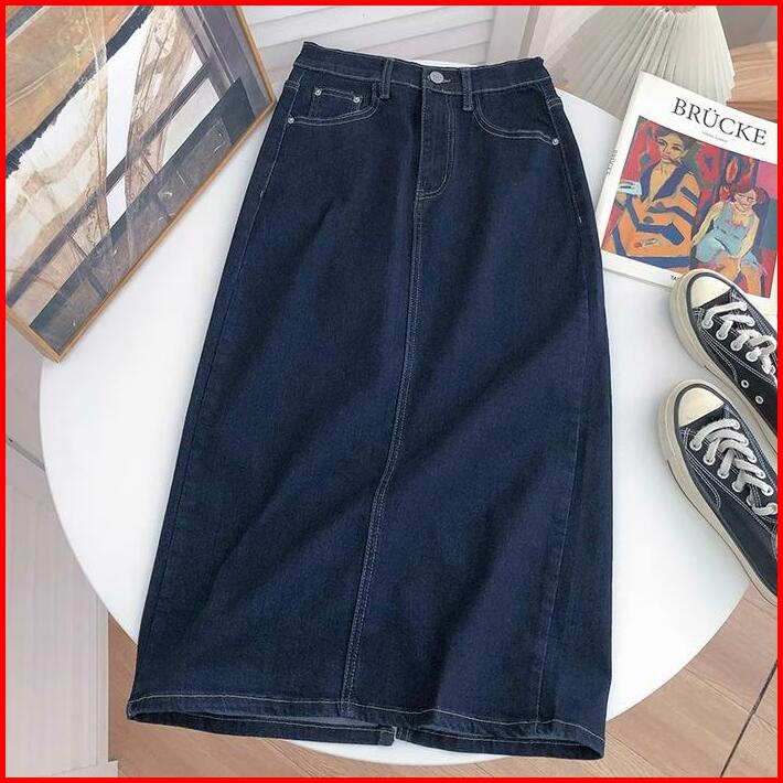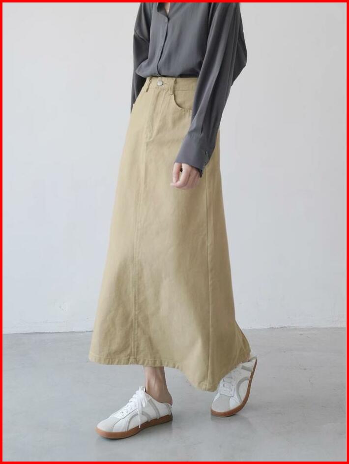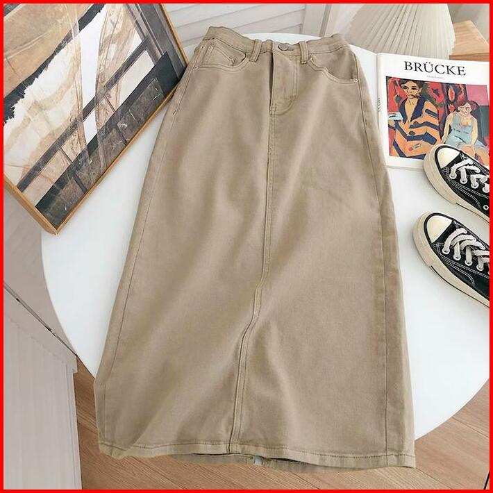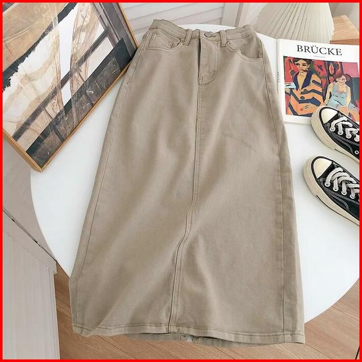 Khaki Rok Jeans Wanita A-line Highwaist Rok Midi Rok Korea