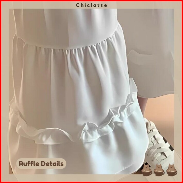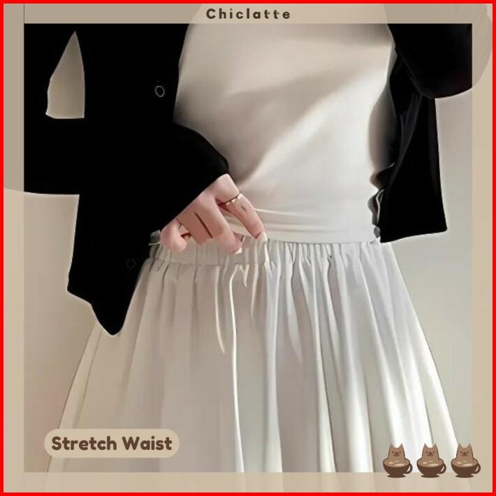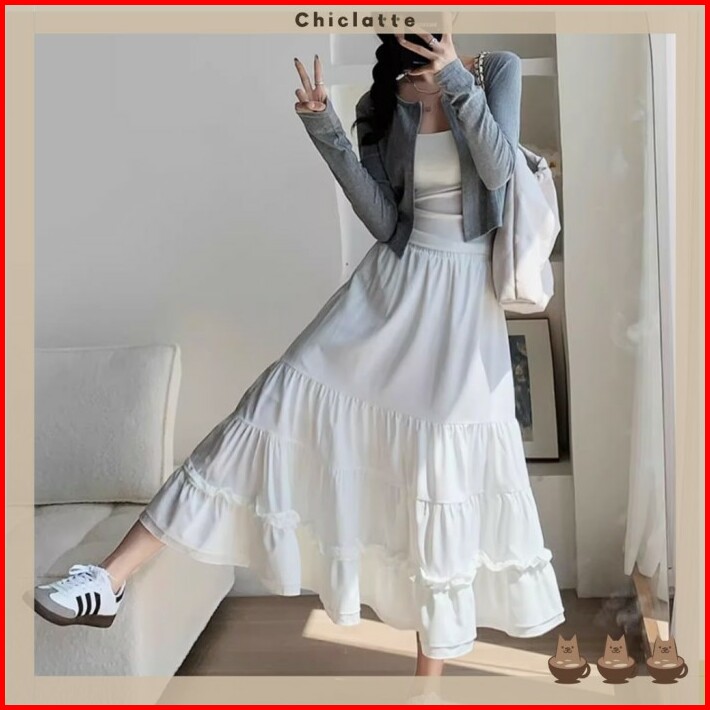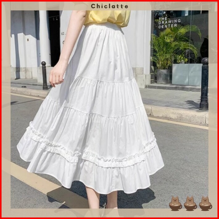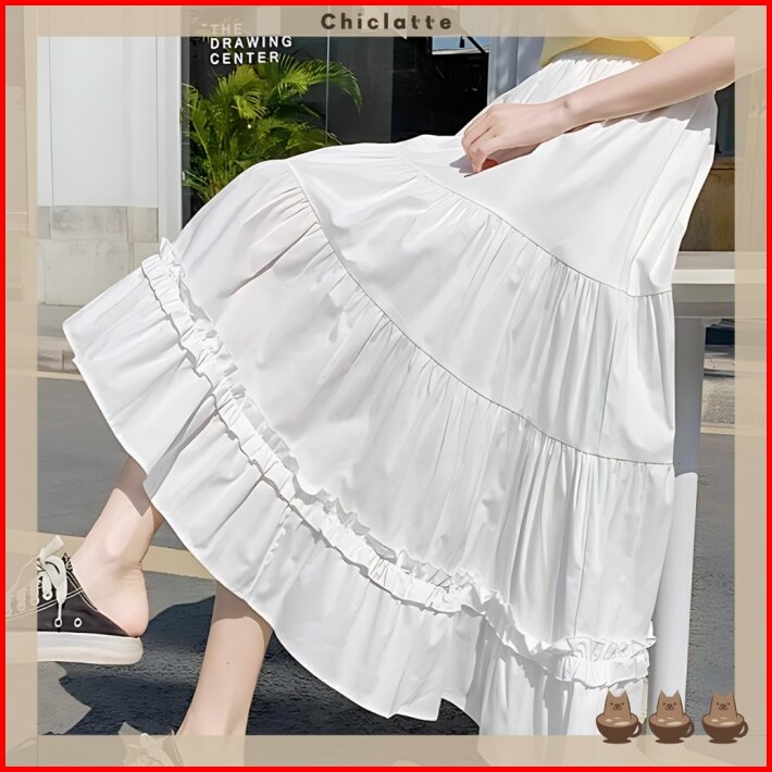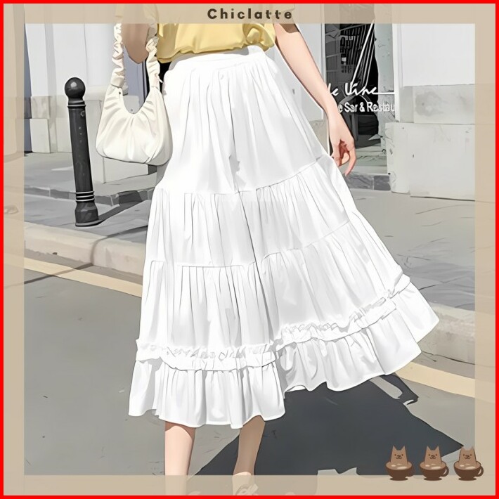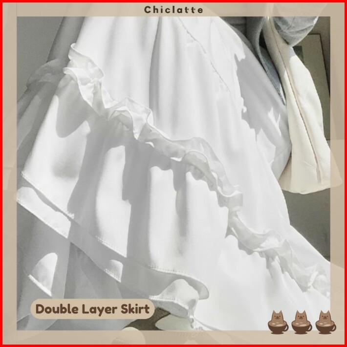Chiclatte Emilia Ruffle Maxi Long Skirt White Rok A Line Bawahan Panjang Putih Double Layer Inner Skirt Frill Kerut Polo