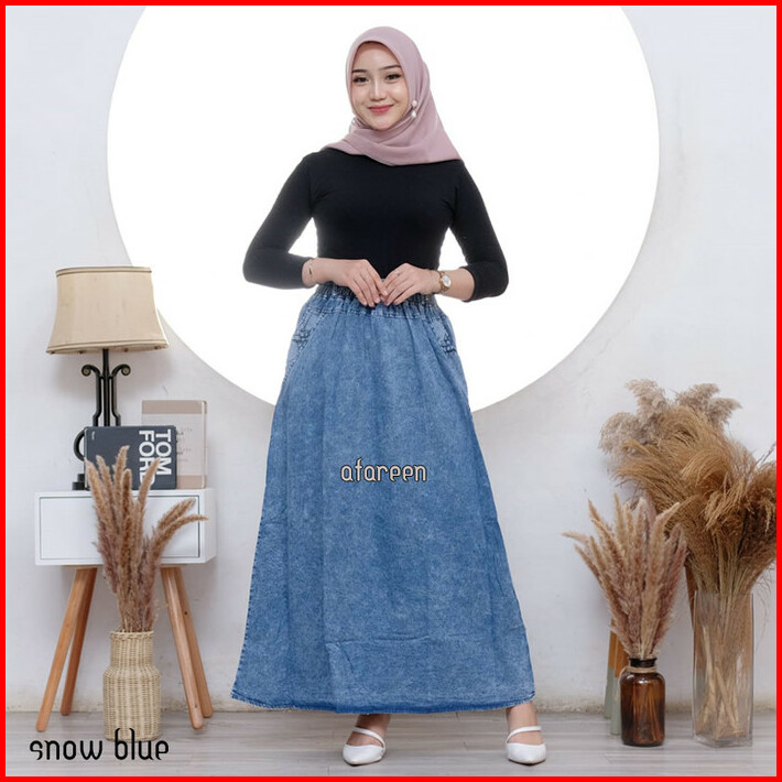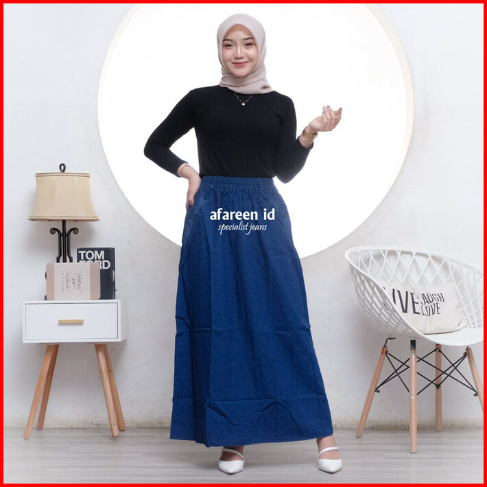 Skirt Jeans Line A Rok Denim Wanita Panjang Rok Jeans Navy Span