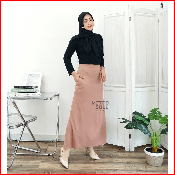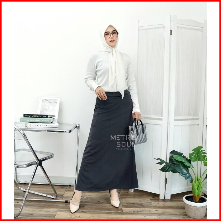 Rok Kerja Panjang A Line Knit Skirt Stretch Jumbo Standar Bigsize 237